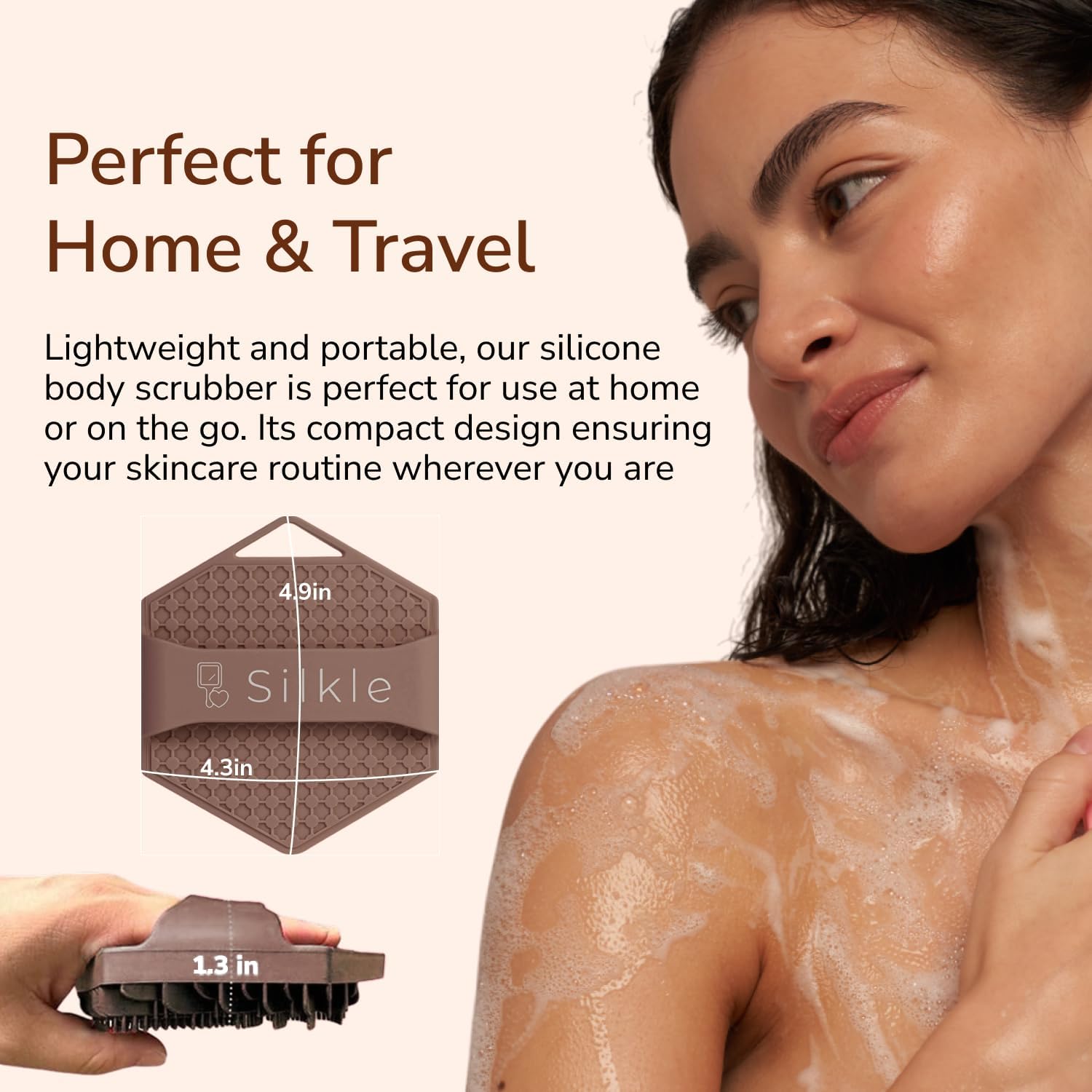 Silicone Body Scrubber - Exfoliating Bath Brush and Skin Cleanser - Shower Sponge for Gentle Body Scrub and Wash - Silicone Scrubbing Care Tool for a Refreshed and Renewed You - Brown