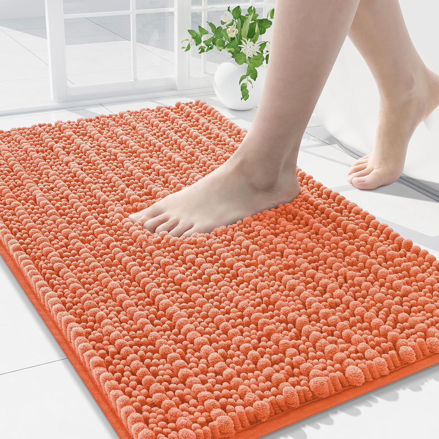 Arotive Luxury Chenille Bathroom Rug Mat, Extra Soft Thick Absorbent Shaggy Bath Rugs, Non-Slip Machine Wash Dry, Plush Bath Mats for Bathroom, Shower and Tub, 34x21, Coral
