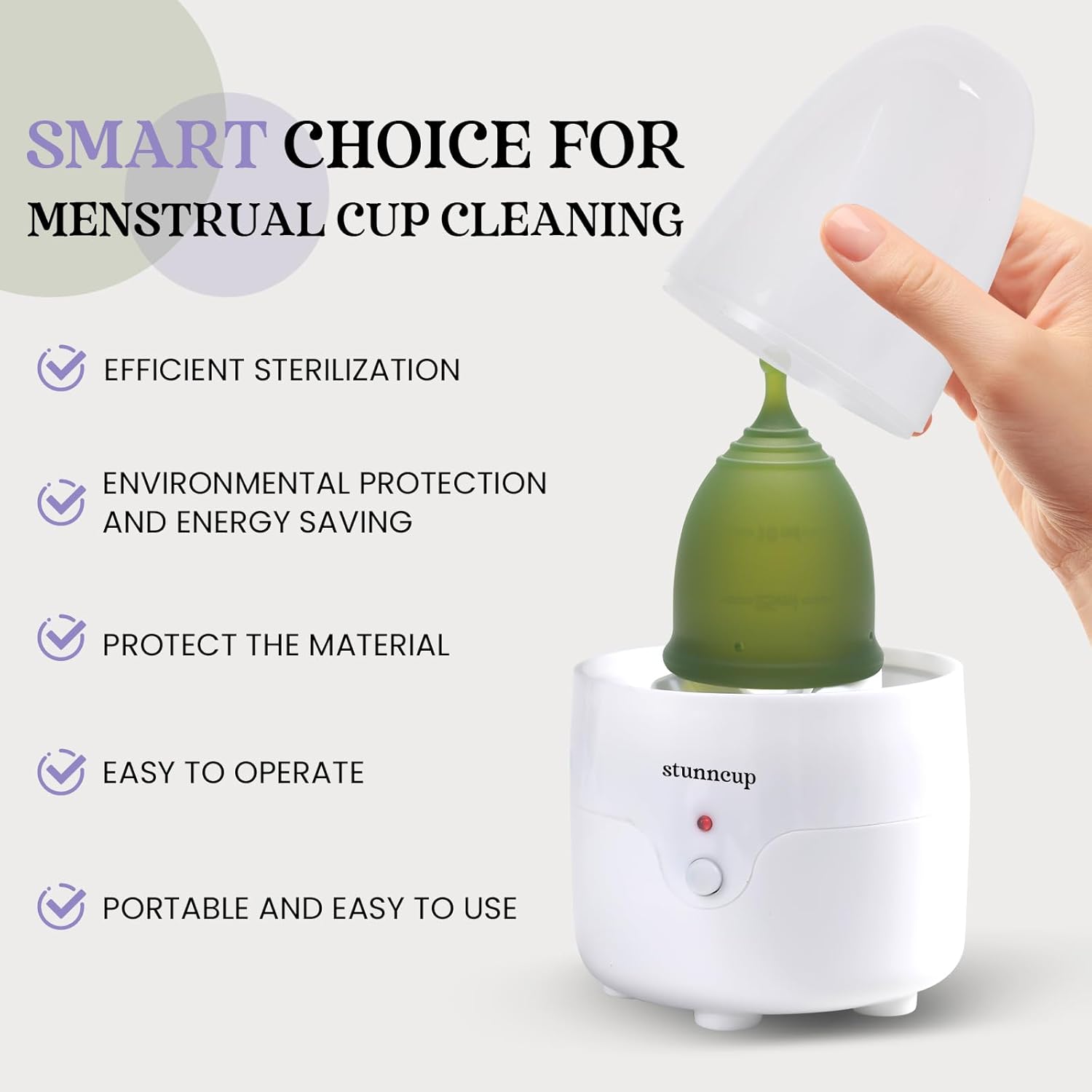 - - 3-Minute Magic - Say-goodbye to boiling menstrual cup or messy routines. Just add 5-10ml water, press start, and let steam do the work! Fits all period cup sizes and shapes, even menstrual disc.