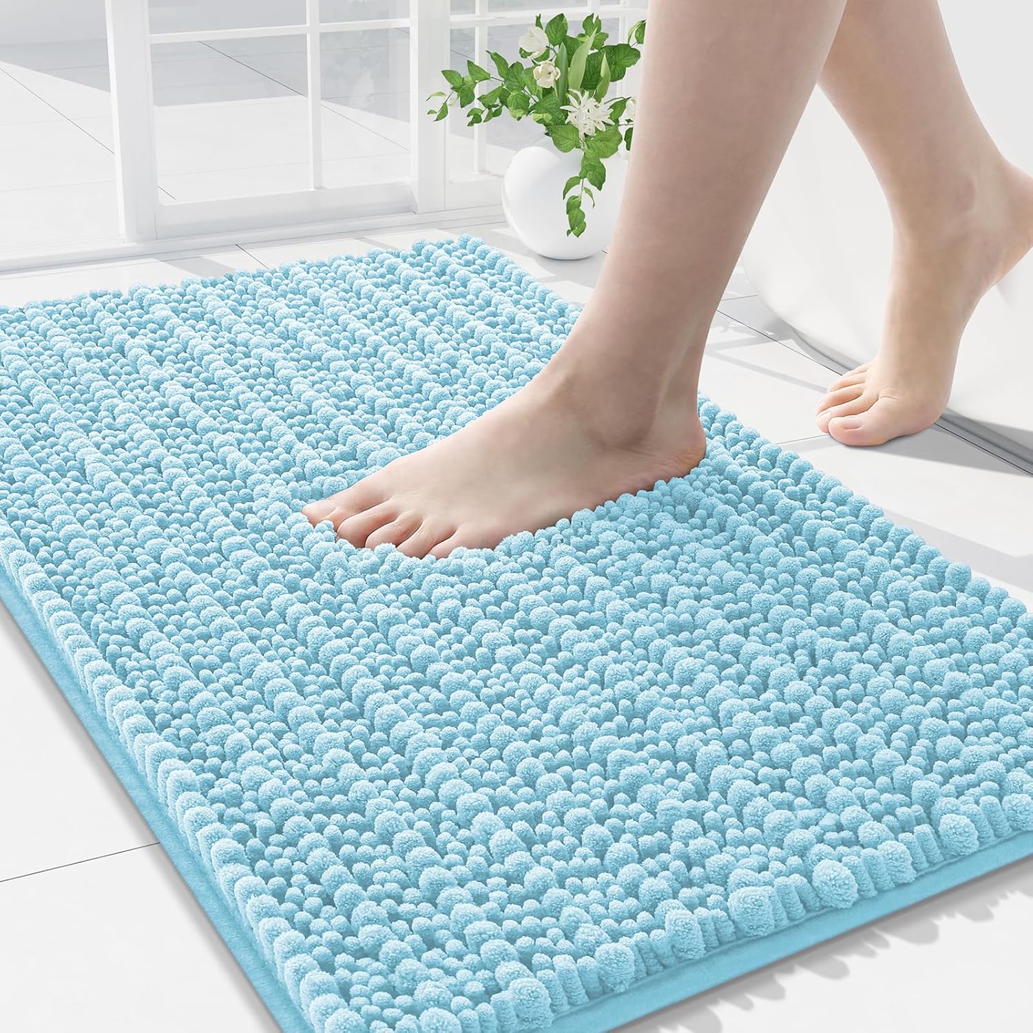Arotive Luxury Chenille Bathroom Rug Mat, Extra Soft Thick Absorbent Shaggy Bath Rugs, Non-Slip Machine Wash Dry, Plush Bath Mats for Bathroom, Shower and Tub, 34x21, Blue