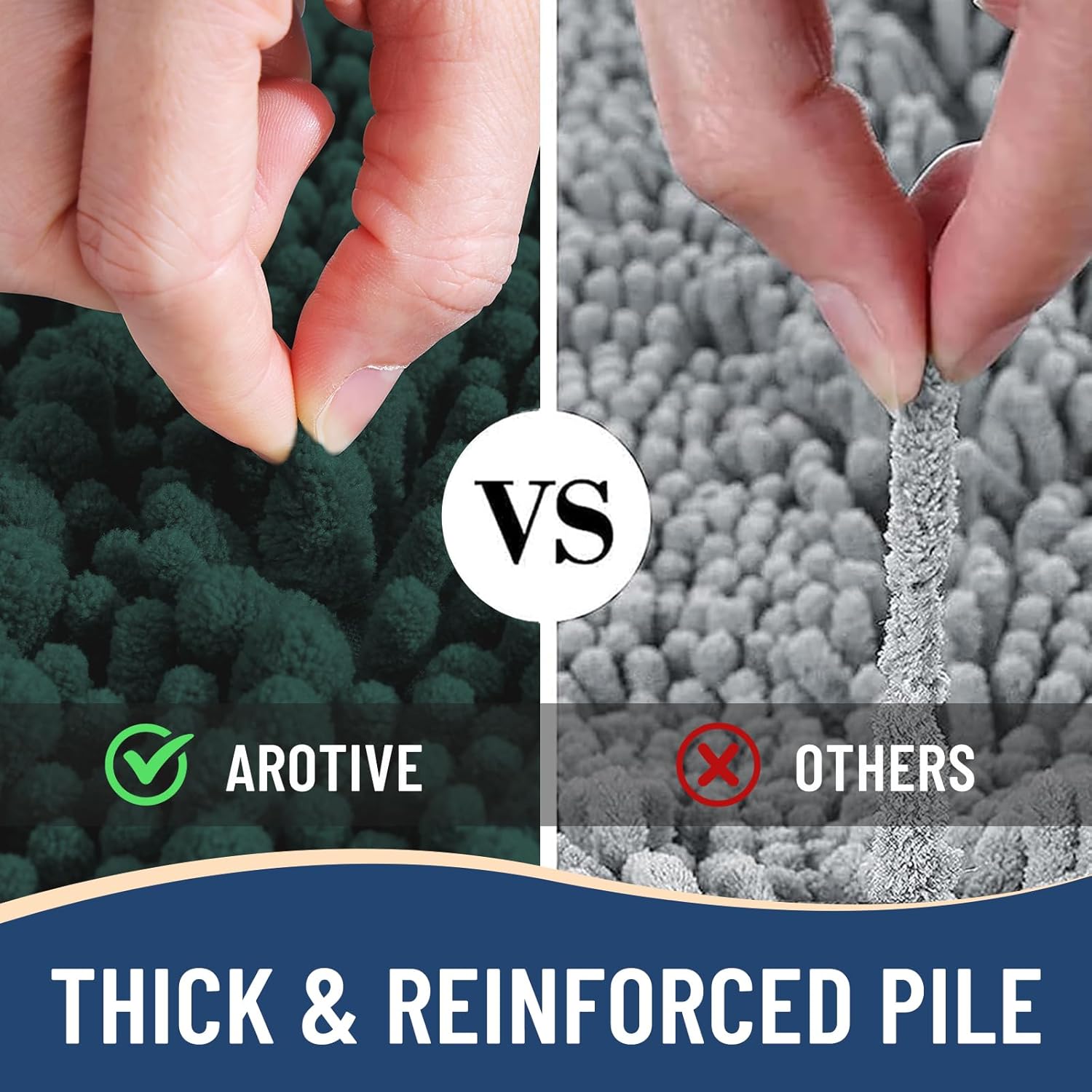 Arotive Luxury Chenille Bathroom Rug Mat, Extra Soft Thick Absorbent Shaggy Bath Rugs, Non-Slip Machine Wash Dry, Plush Bath Mats for Bathroom, Shower and Tub, 44x32, Dark Green