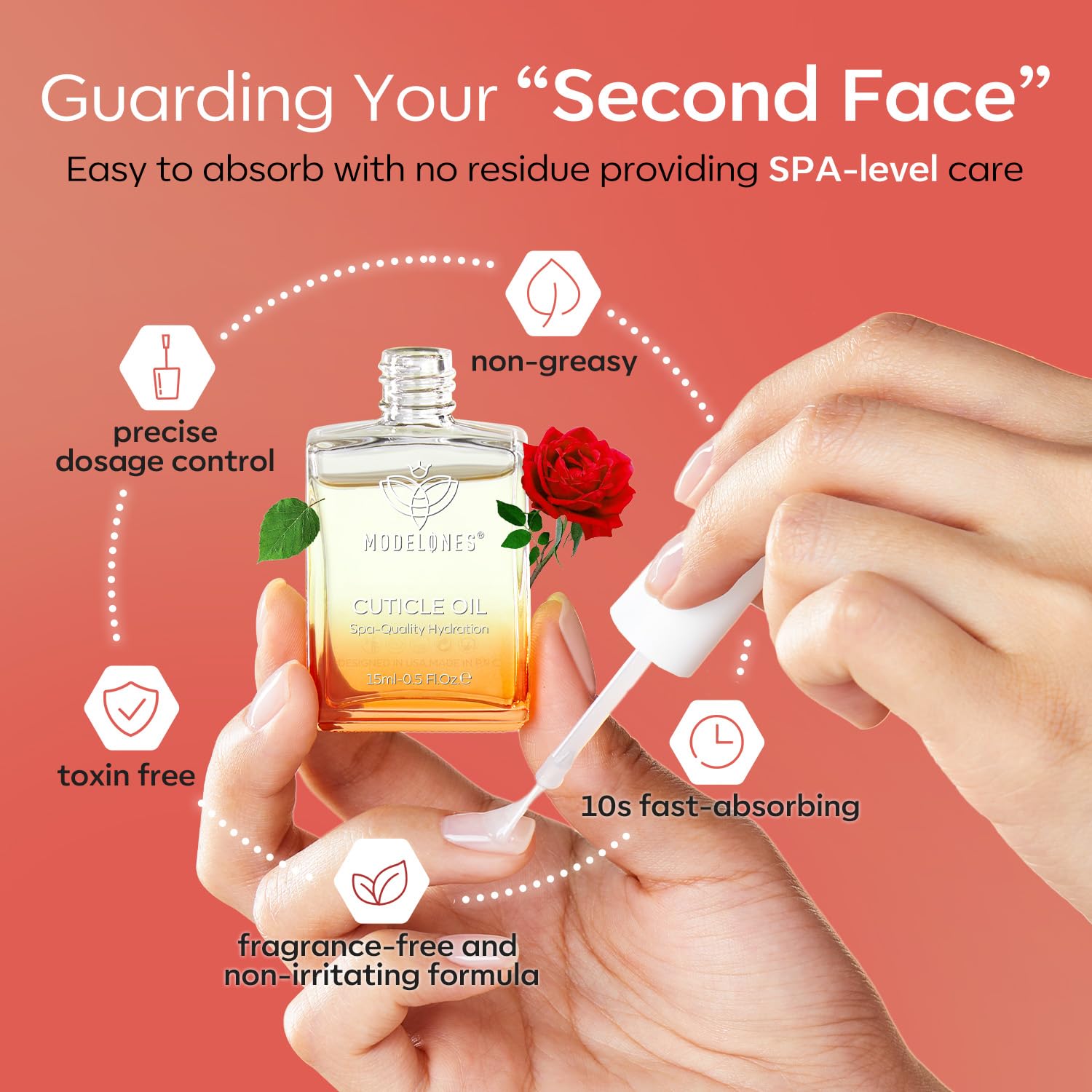 modelones Cuticle Oil for Nails Rose Nail Oil for Growth and Strength Nail Growth Oil Cuticle Care Quick Dry Nail Care Moisturize and Strengthen Damaged Nails 15ml 0.5Fl Oz