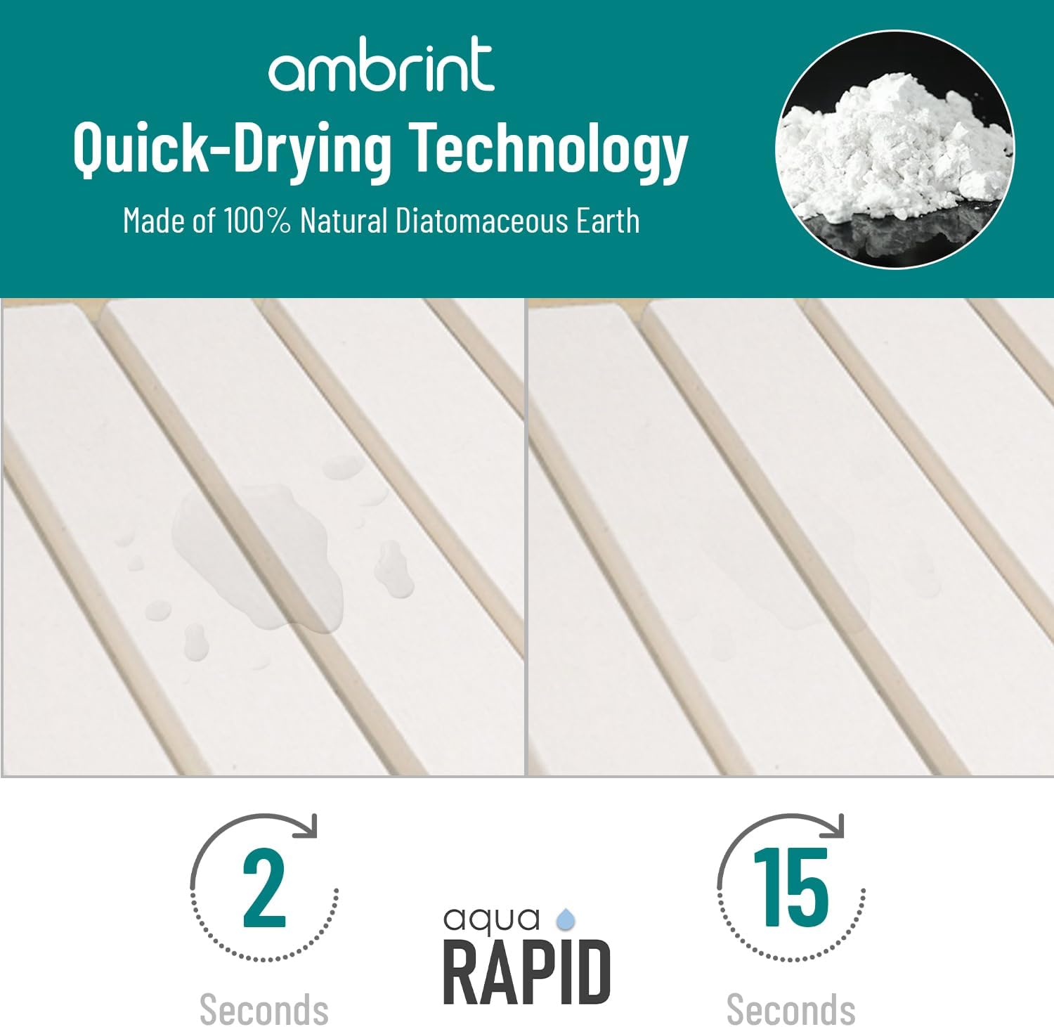 - 【Super Absorbent & Fast Drying】 Ambrint stone dish drying mat is made from natural diatomaceous earth that absorbs water in seconds and dries within minutes. Keeps countertops clean, dry, and free from water stains. Perfect replacement for bulky dish racks or soggy cloth mats.