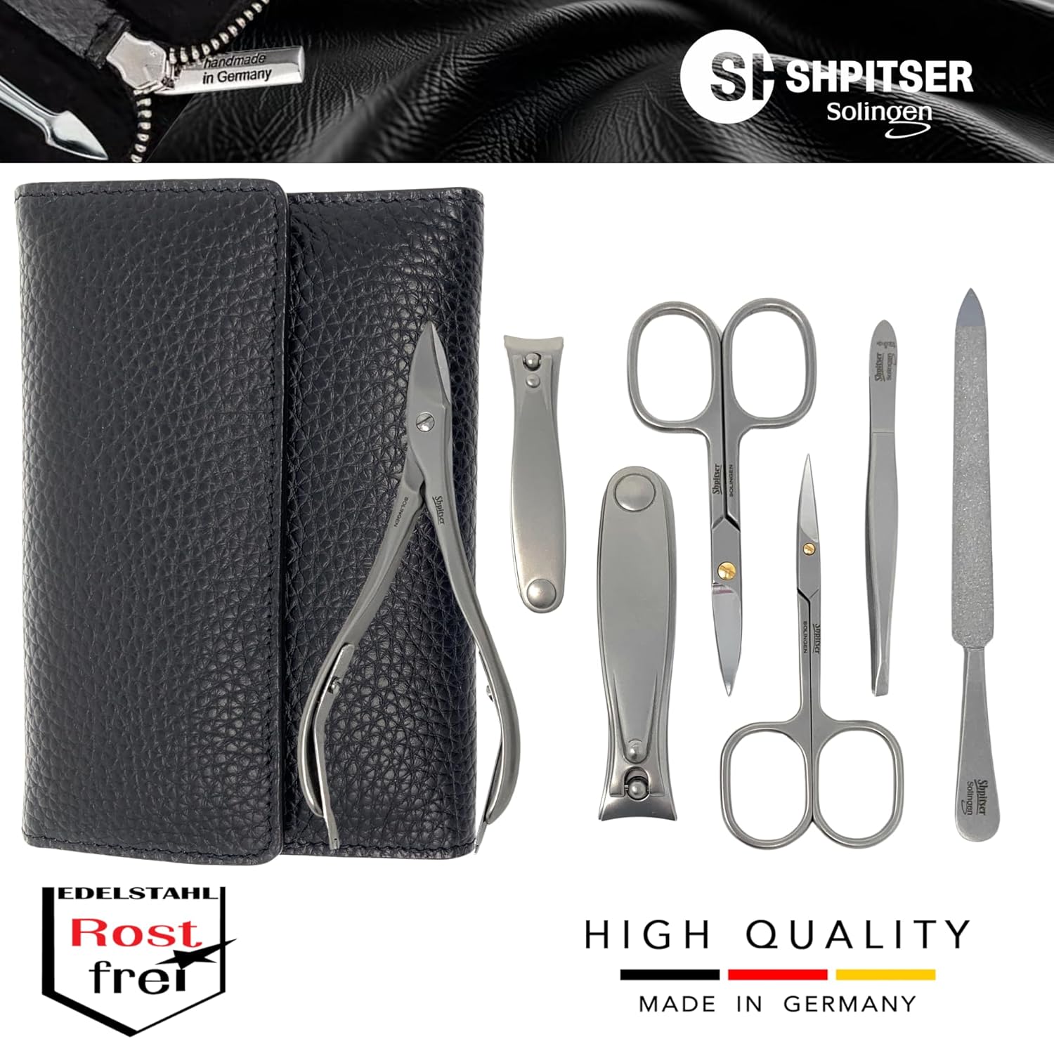 - HANDMADE IN SOLINGEN GERMANY - SHPITSER Professional stainless steel manicure and pedicure tools are expertly crafted and hand-sharpened by skilled artisans. With a commitment to quality and precision, each tool is designed to deliver superior performance and durability.