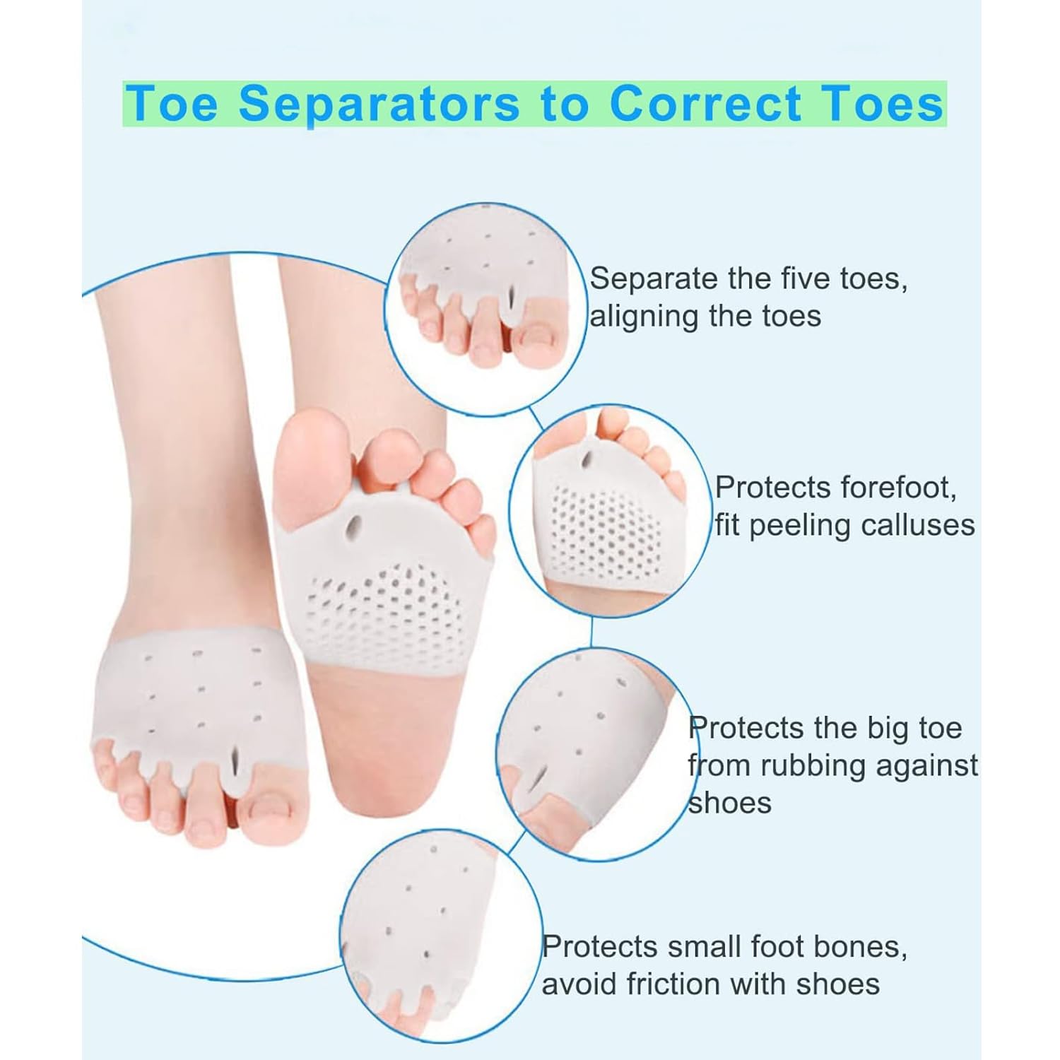 - Excellent Material and Reliable: Toe spacers for feet men and women are made of high-quality silicone material that is not only soft, elastic, and non-irritating, but also helpful! one size fits most people, without worrying about your size. Foot pads Use with socks, sneakers, boots and a variety of everyday footwear