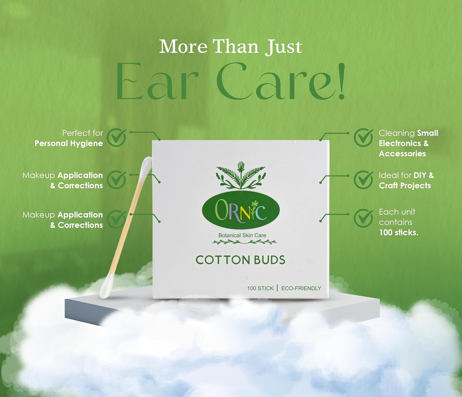 - Sustainable & Plastic-Free – Made with natural bamboo and organic cotton, ORNIC eco-friendly cotton swabs provide an environmentally conscious alternative to plastic swabs. These biodegradable cotton buds help reduce plastic waste and support a greener planet.