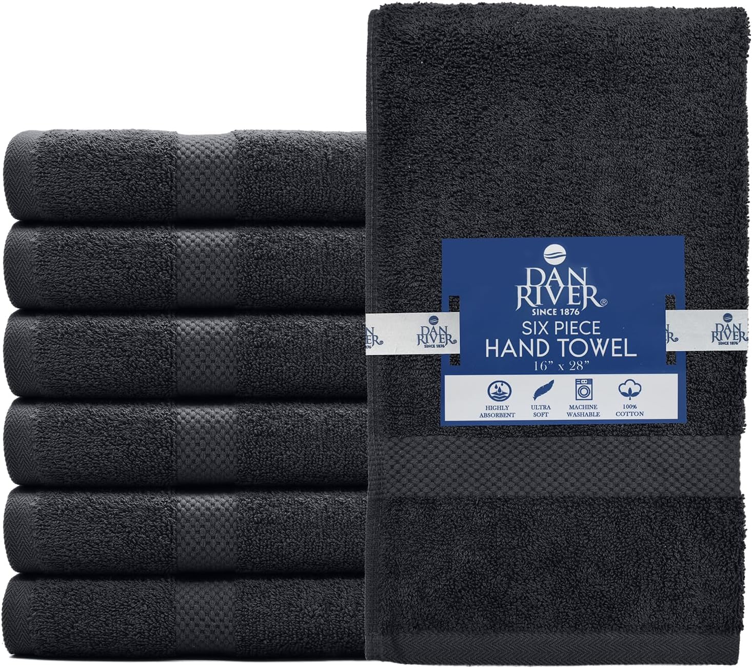 DAN RIVER 6-Pack Premium Hand Towels (16x28 Inches) - 100% Cotton, Ultra Soft, Lightweight, Highly Absorbent Towels for Bathroom, Spa, Gym, Salon, Hotel, and Travel - 550 GSM โ Dark Gray