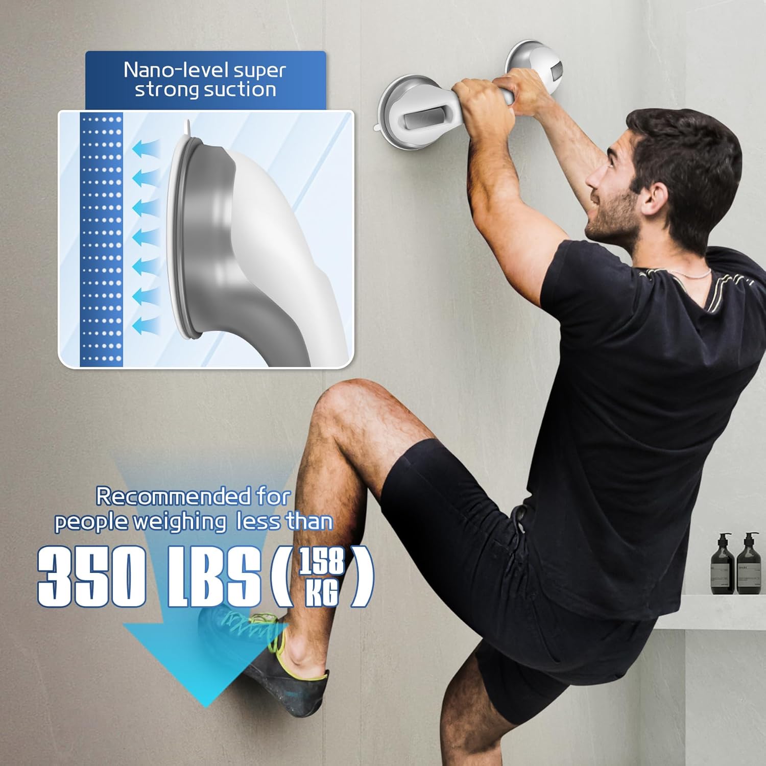 - Strong Suction, No Tools Required - Installs grab bars for wall in seconds with one-click setup—no tools needed. Ideal for both temporary and permanent use, especially when assisting loved ones with limited mobility. For best safety performance, replace shower grab bars suction cups every 3 months.
