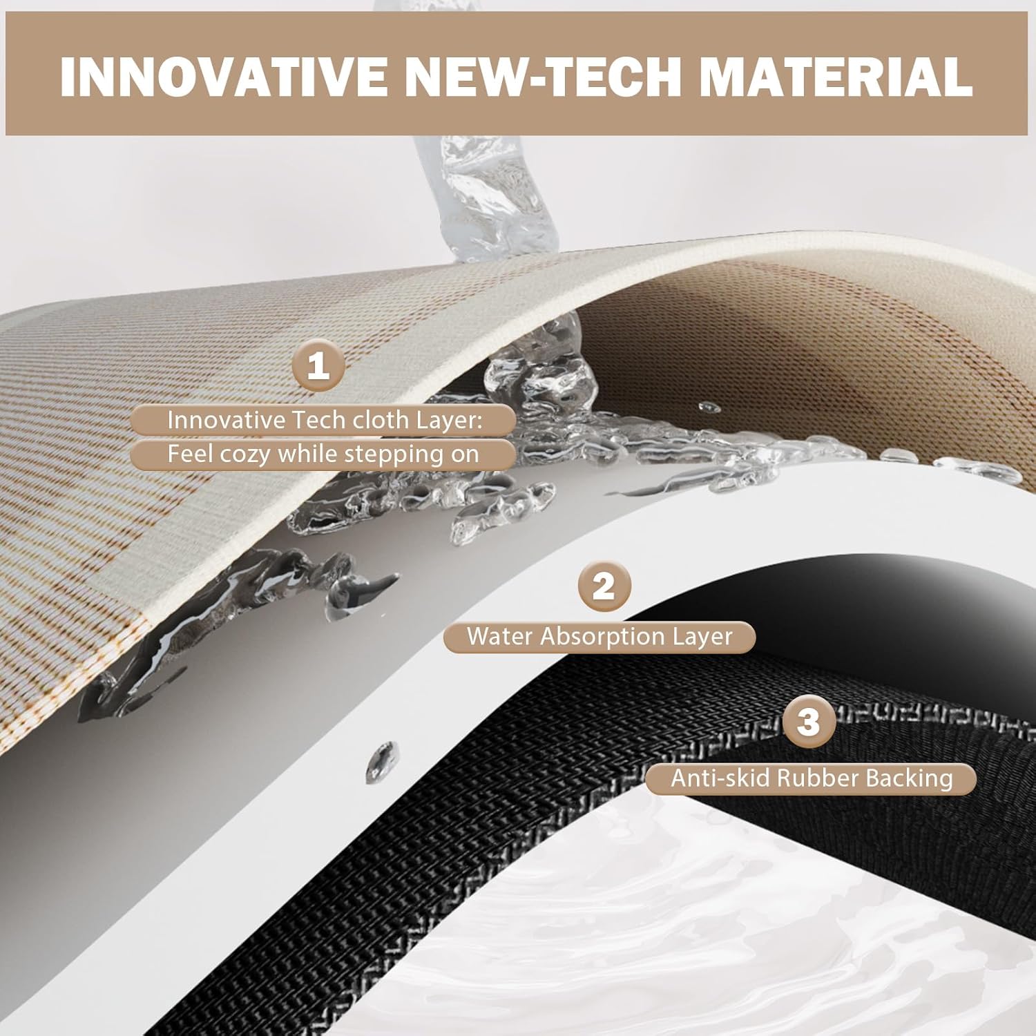 - Super Absorbent & Quick Dry: Super absorbent and quick drying diatomaceous earth bath mat's surface of technological fabric fabric and nano porous absorbent layer can instantly absorb dripping water, while the nano porous absorbent layer allows water to evaporate quickly and fast drying in the natural air, without leaving obvious watermarks or stains, the watermarks will be magically disappeared in a few minutes.