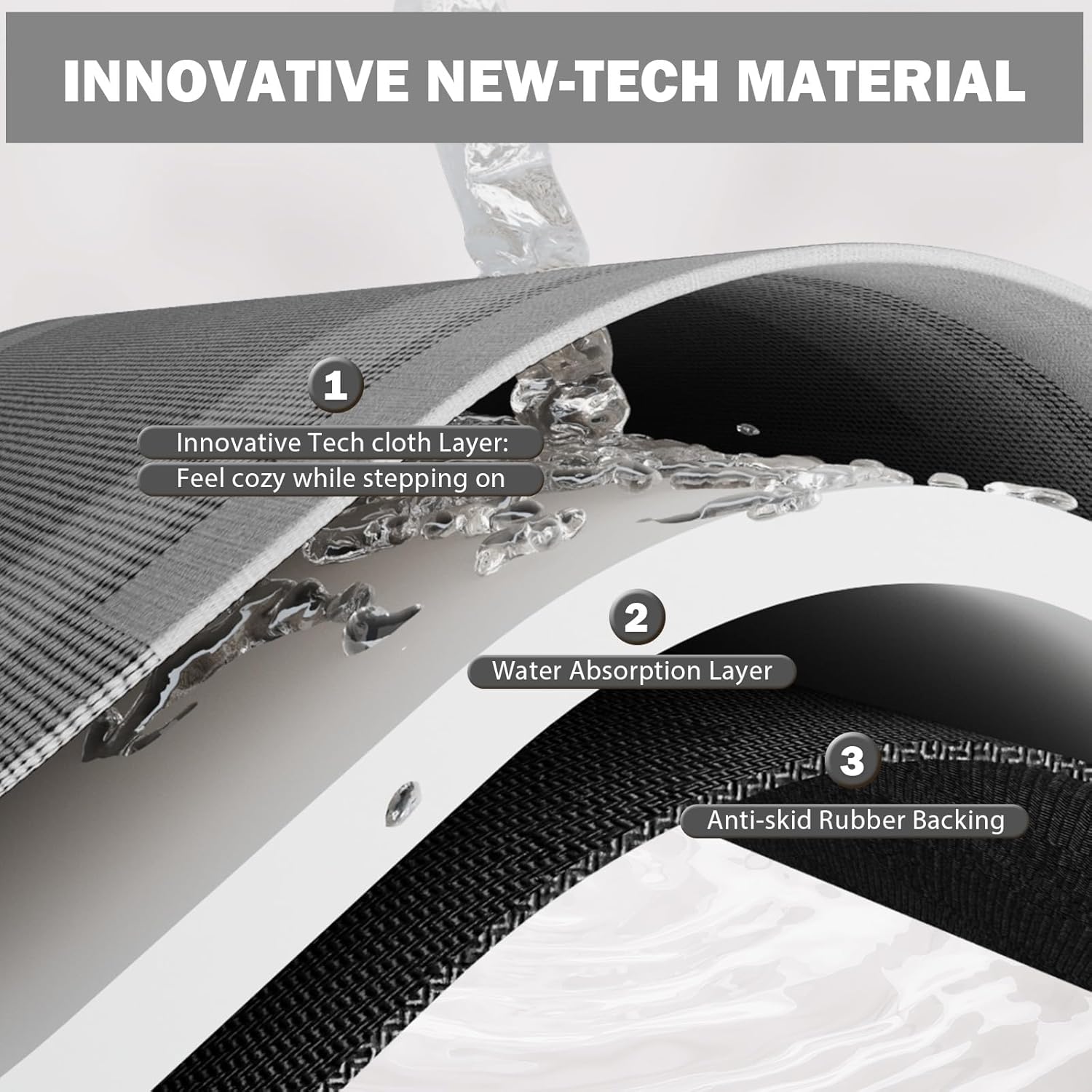 - Super Absorbent & Quick Dry: Super absorbent and quick drying diatomaceous earth bath mat's surface of technological fabric fabric and nano porous absorbent layer can instantly absorb dripping water, while the nano porous absorbent layer allows water to evaporate quickly and fast drying in the natural air, without leaving obvious watermarks or stains, the watermarks will be magically disappeared in a few minutes.