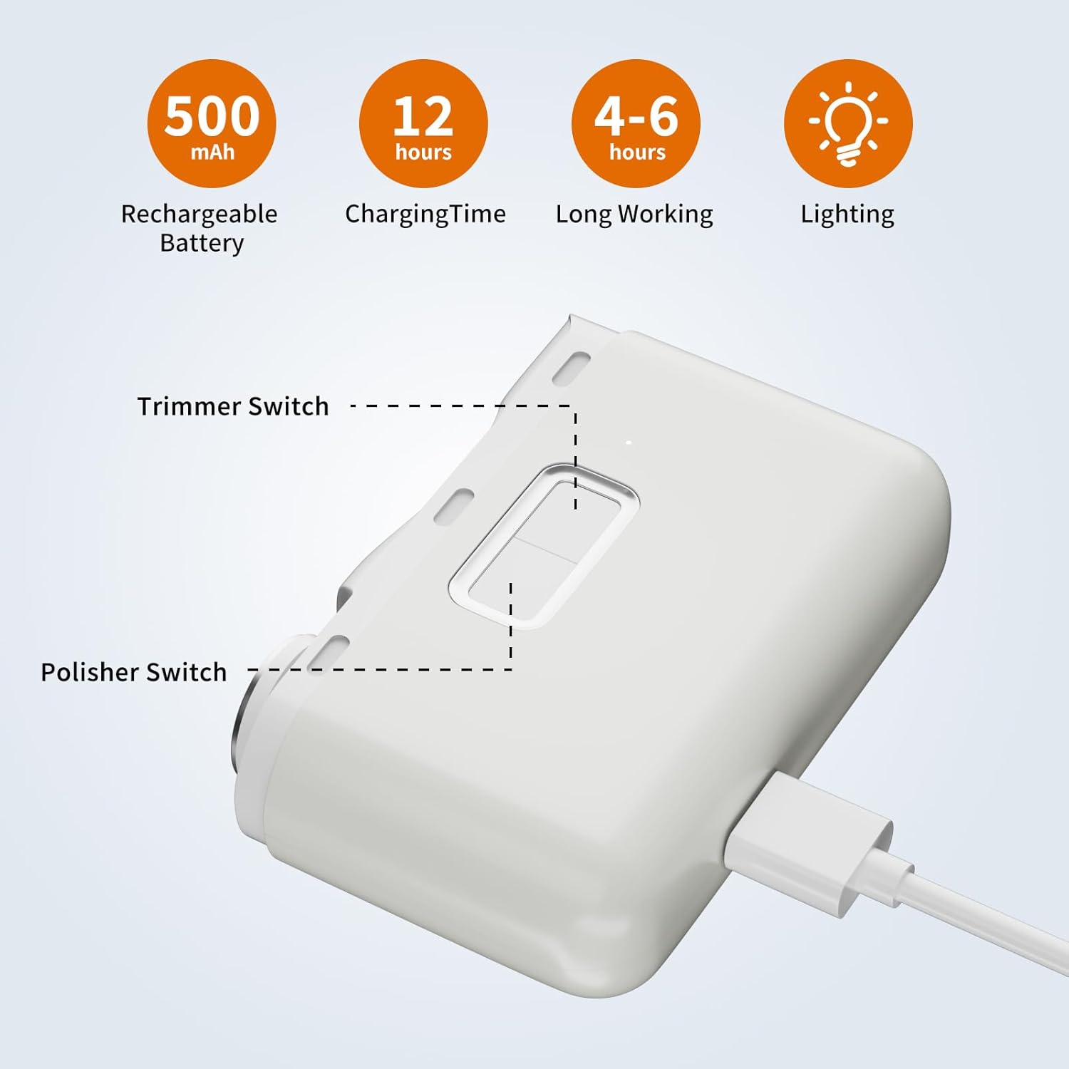 - 2-in-1 Nail Trimmer & Polisher – Upgrade your nail care with this electric nail clipper that trims and polishes in one. The trimming function neatly shortens nails without painful pinching, while the polishing feature smooths rough edges, leaving nails rounded and comfortable. This means no more snagging clothes, scratching delicate skin, or dealing with jagged tips.