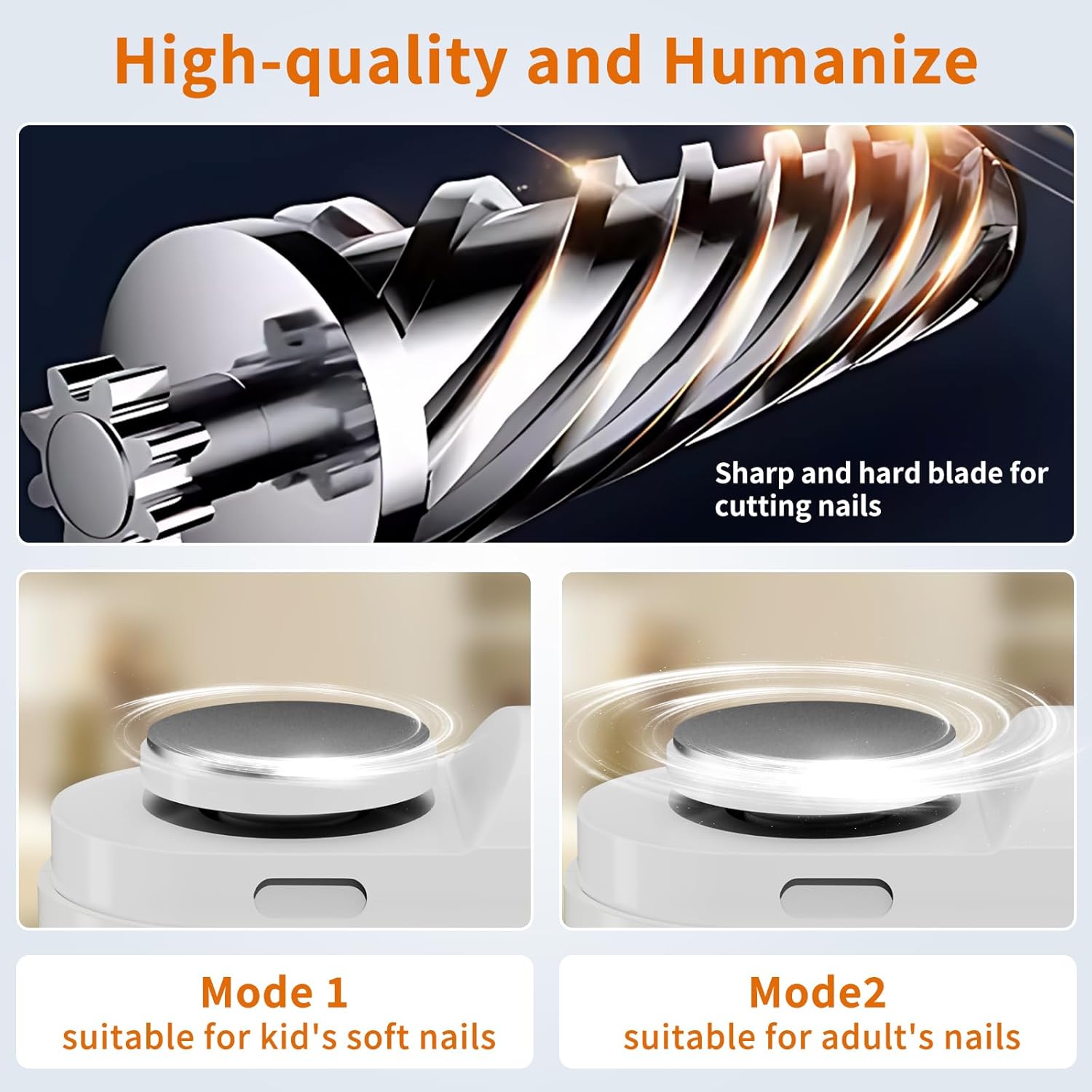 - 2-Speed Nail Care for All Ages – Designed with 2 adjustable speed settings, this electric nail clipper makes trimming and polishing effortless for kids, adults, and seniors. Gentle mode ensures safety for delicate nails, while high-speed mode handles thicker nails with ease. A versatile tool that provides salon-quality results at home without pain, pressure, or the risk of accidental cuts.