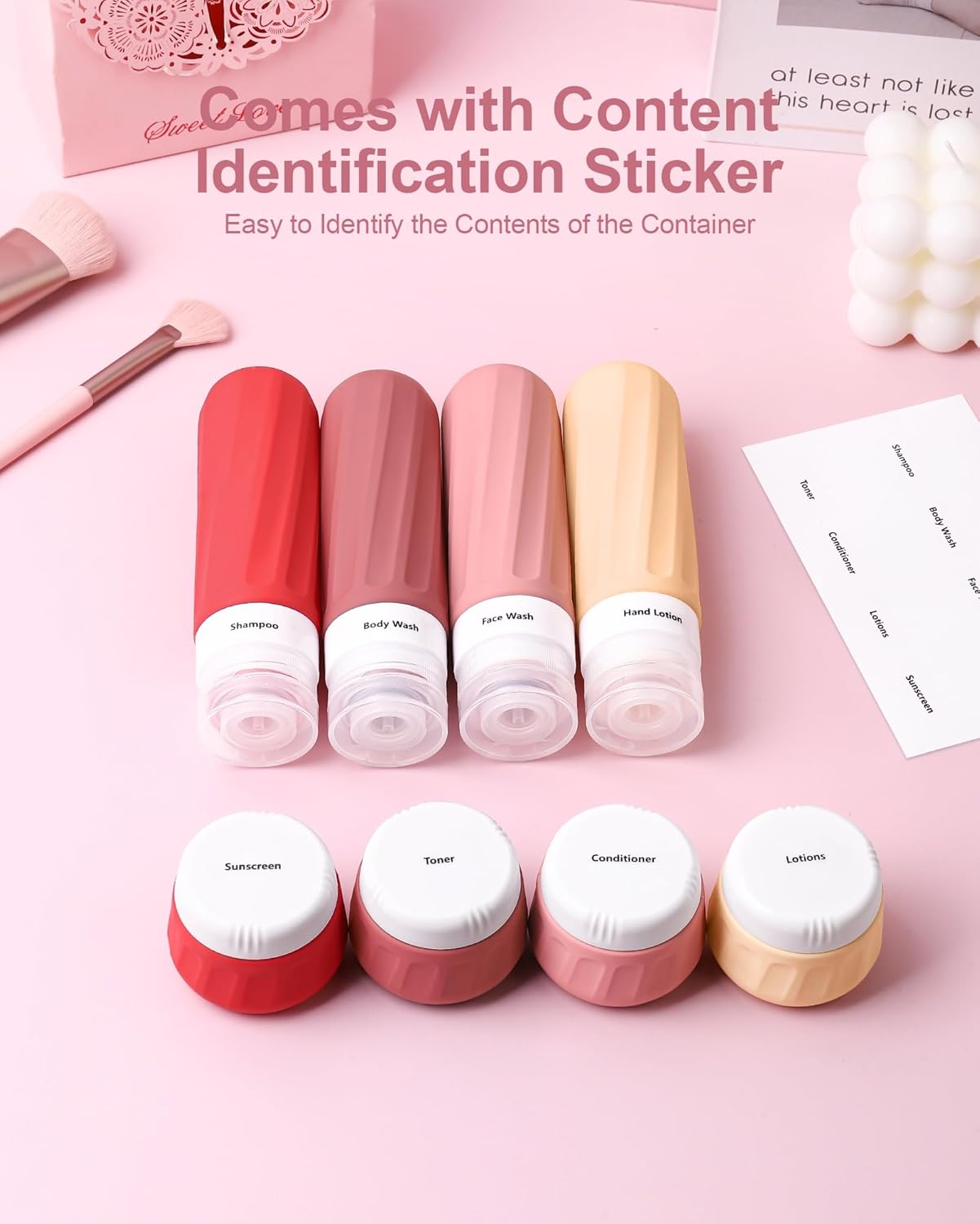 Travel Bottles for Toiletries 8 Pack, Travel Size Toiletries, Tsa Approved Travel Size Containers 3oz, with Travel Essentials Clear Bag, Leak Proof Silicone Squeezable Creams Jars