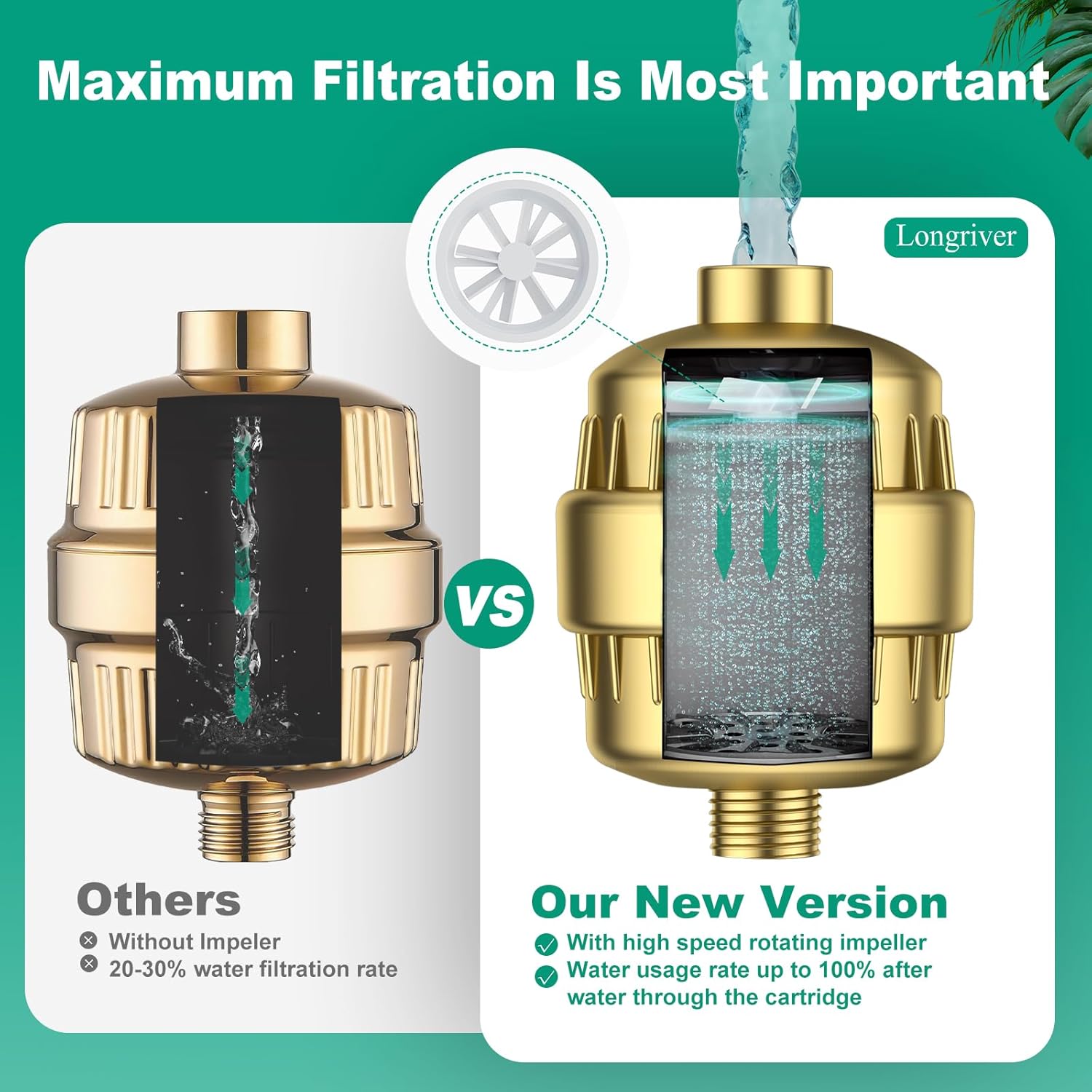 - Unique Design: Our filter cartridge features a high-speed rotating impeller, which makes water fully penetrates the filter material, achieving a 100% water usage rate