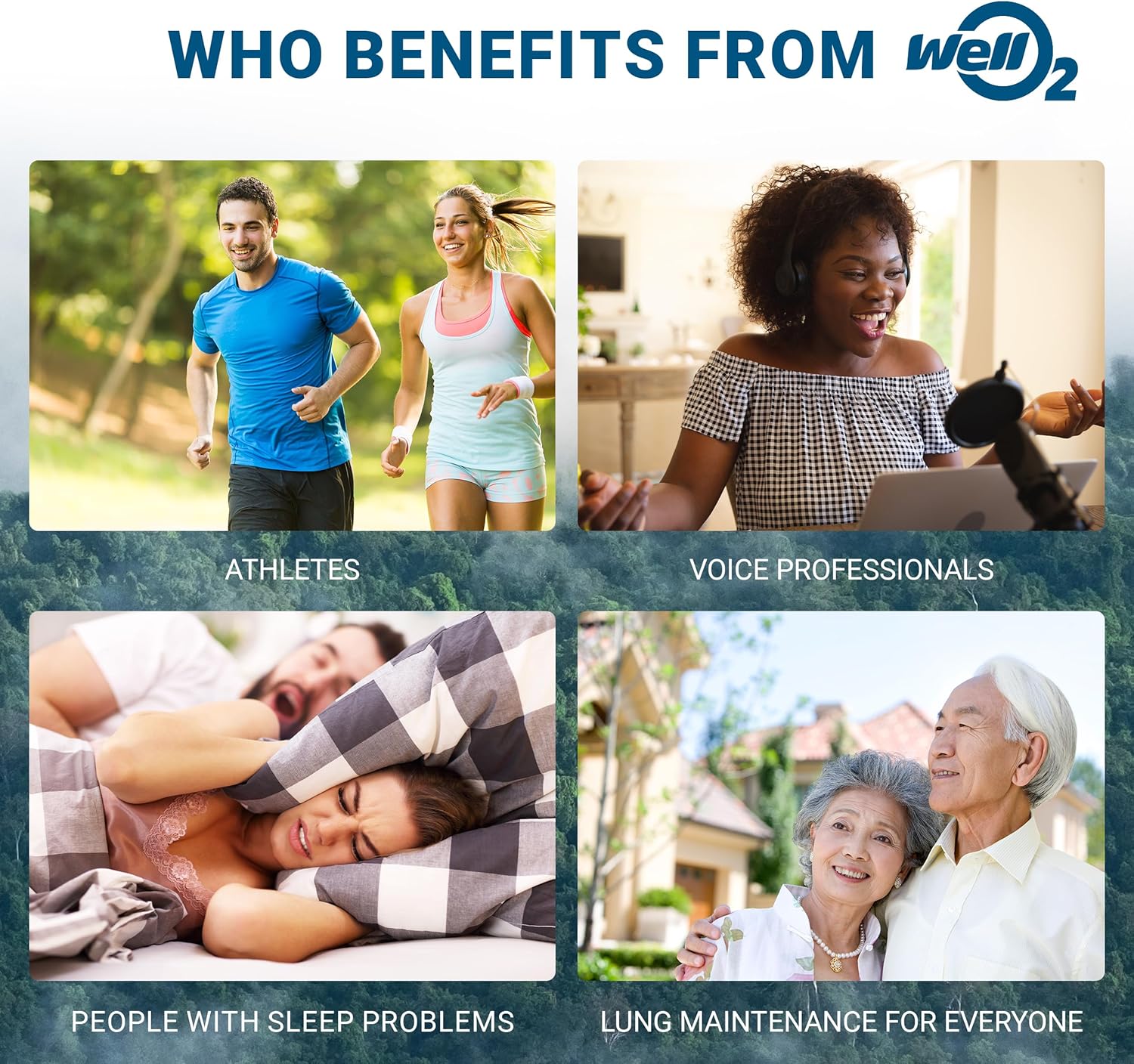- DESIGNED FOR WELLNESS: WellO2 is an easy to use next-generation breathing exerciser, that supports respiratory restoration, aids in lung function maintenance, and provides essential care for athletes, singers, seniors, and voice professionals