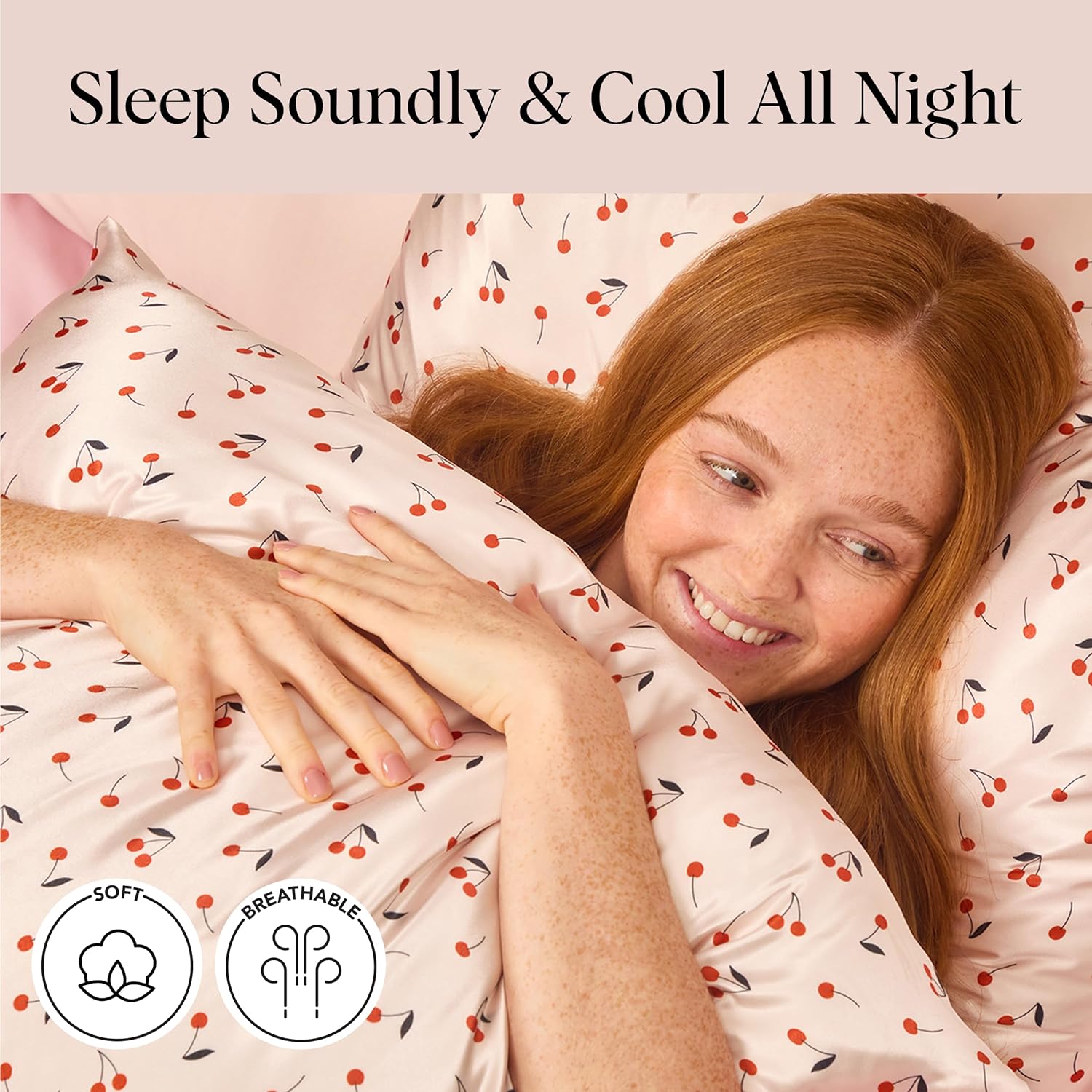 Kitsch Satin Pillowcase, Softer Than Silk Pillow Cases Queen, Cooling Pillow Covers, Satin Pillowcase w/Zipper for Hair, Skin & Quality Sleep, Wrinkle-Free & Smooth, Queen Size 19"x26", Cherry Print