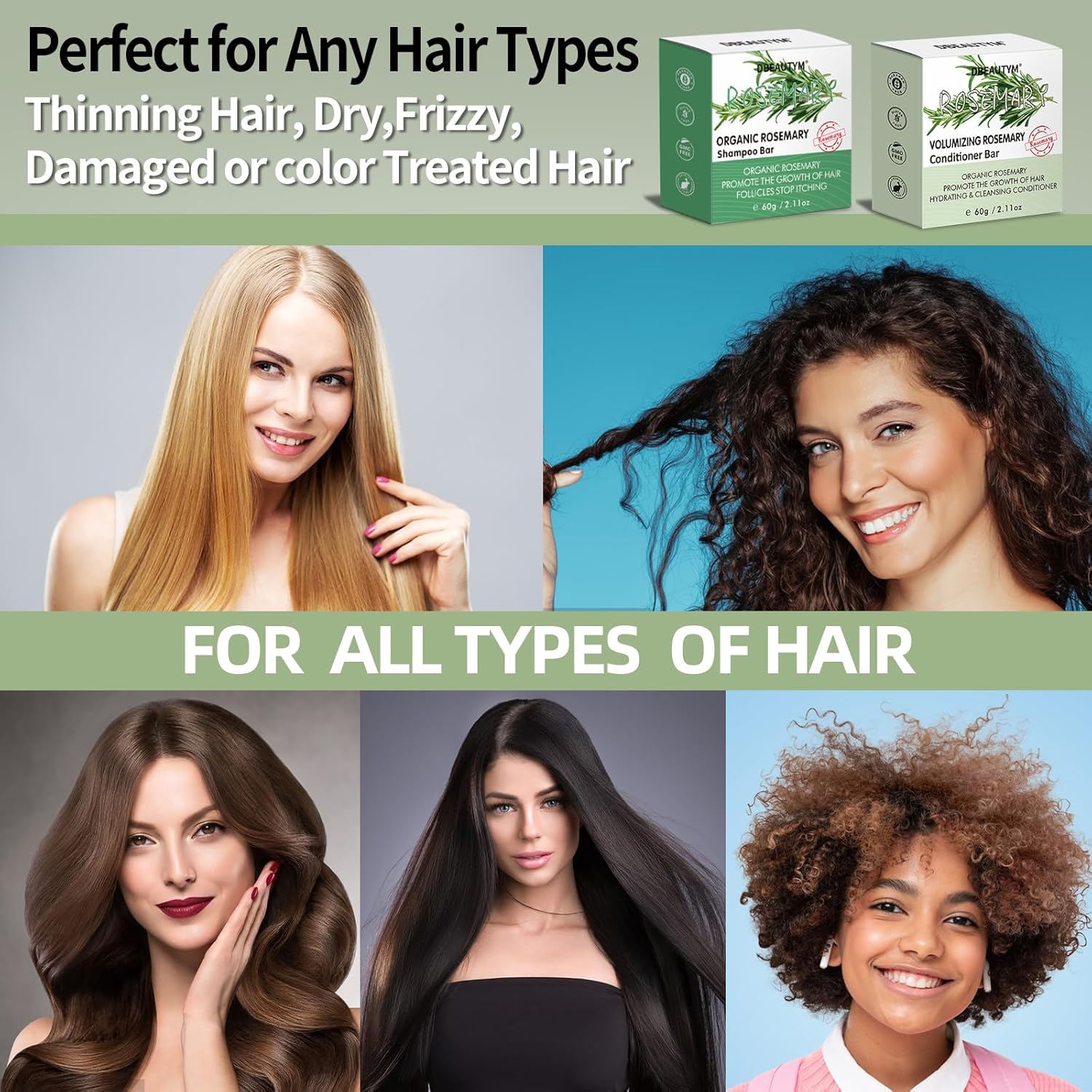 2 Pack Rosemary Shampoo Conditoner Bar Set,Thinning Hair-Volume Shampoo & Conditioner Bar for Men and Women,Hair Thickening & Regrowth Treatment,Hair Growth Soap for Anti-Hair Loss