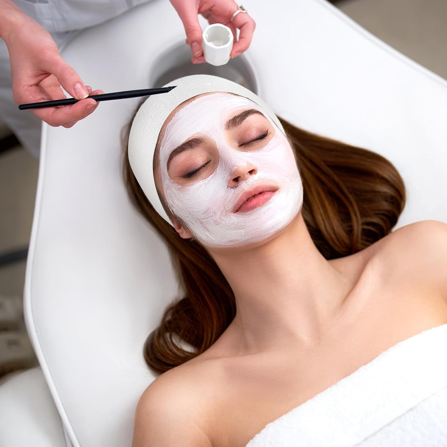- 【Universal Fit】The adjustable stick tape design allows facial headbands for women to stretch from 18 inches to 27.6 inches, accommodating diverse head sizes with ease. The 2.44-inch width provides ample coverage to keep hair away from the face, ears, and neck during disposable headbands for facials, makeup application, or workouts. A single-snap closure ensures quick adjustment, reducing time spent on fitting while maintaining a secure hold throughout treatments.