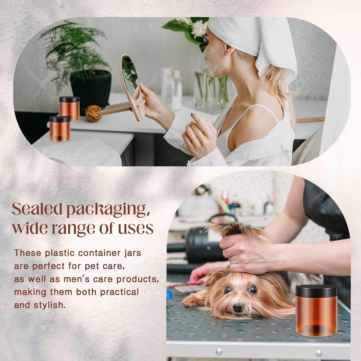 Patelai 4 Pieces Round Wide-mouth Leak Proof Plastic Container Jars with Lids for Travel Storage Makeup Beauty Products Face Creams Oils Salves Ointments DIY Making(16 Ounce,Amber)