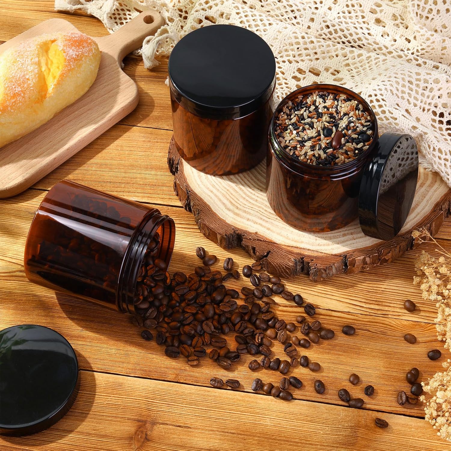 - What You Receive: there are 4 pieces plastic jars with black screw-on lids; They are durable and refillable, measuring about 16 oz in capacity