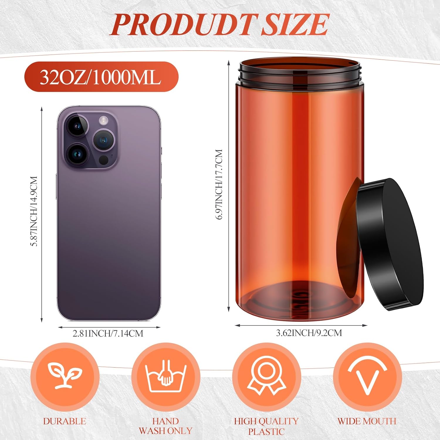 - What You Receive: there are 4 pieces plastic jars with black screw-on lids; They are durable and refillable, measuring about 32 oz in capacity