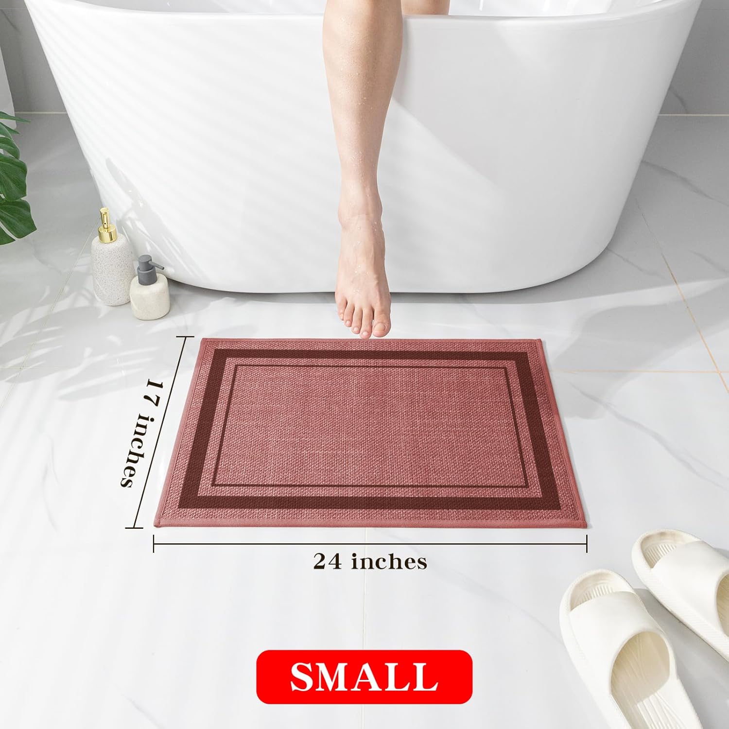 chakme Bathroom Rugs Mat 24x17, Ultra Thin Non Slip Bath Mat Small Quick Dry Absorbent Bath Mat for Bathroom, (Dark Pink, 24"x17")