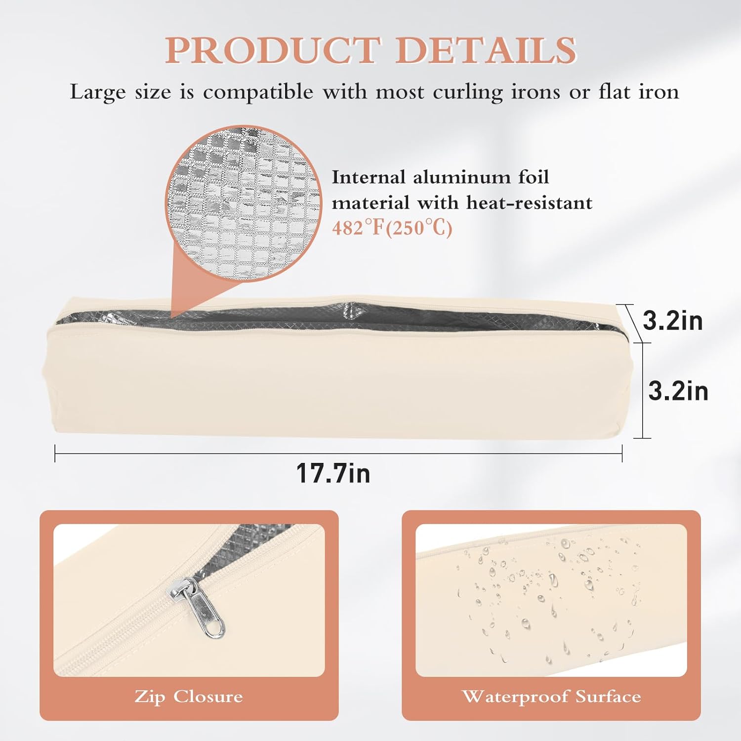 - EXCELLENT DESIGN: This curling iron holder bag is designed with 17.7 x 3.2 x 3.2 inches, and can accommodate most hair styling tools; It weighs 0.18 lb only and will not place an extra burden when you travel; The inner lining of our flat iron travel case is made of special aluminum foil material which can be cleaned by gently wiping it with a cleaning cloth