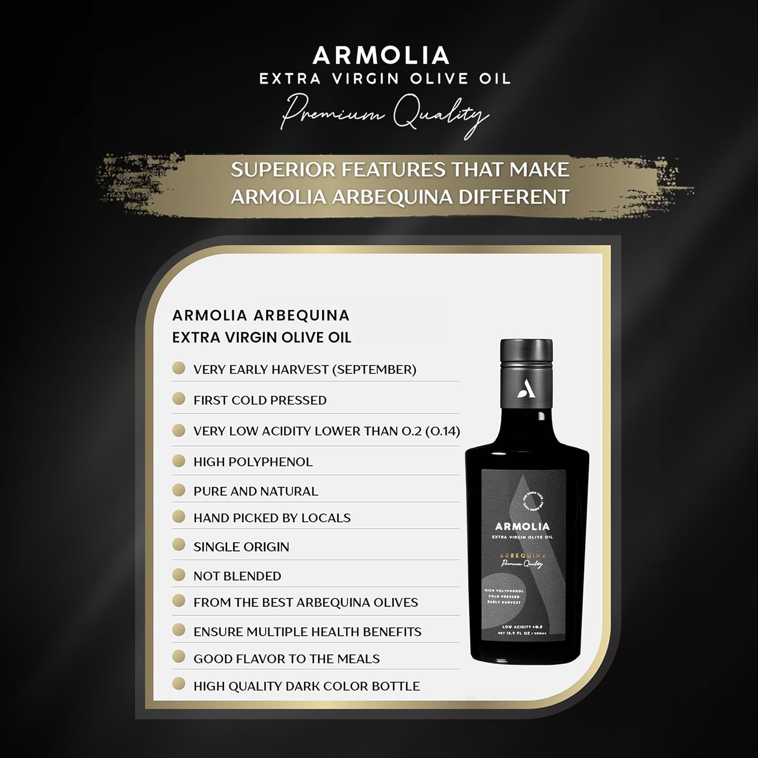 - 2025 NEW YORK GOLD AWARD-WINNING EARLY HARVEST OLIVE OIL – ARMOLIA Pure Olive Oil is an EVOO award winner, produced from early-harvested olives to ensure the highest quality and exceptional taste. Perfect for drinking, drizzling, or gourmet cooking.