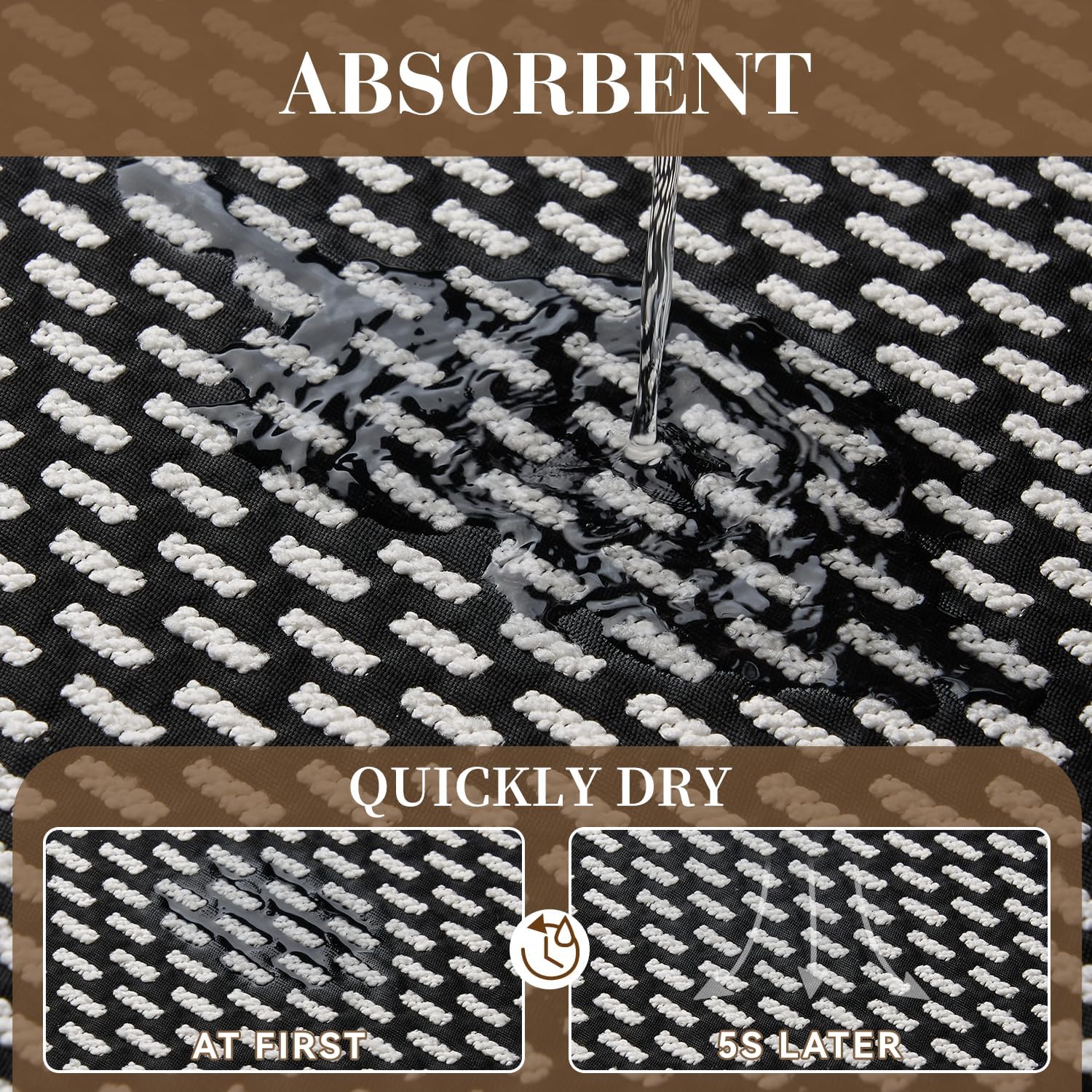 - Super Absorbent: Crafted with high-quality absorbent polyester, these bath mats for bathroom can quickly lock the small water droplets from wet feet after a shower. Absorbent bath mat will effectively keep the bathroom floor dry and clean, reducing the risk of slips and water stains.