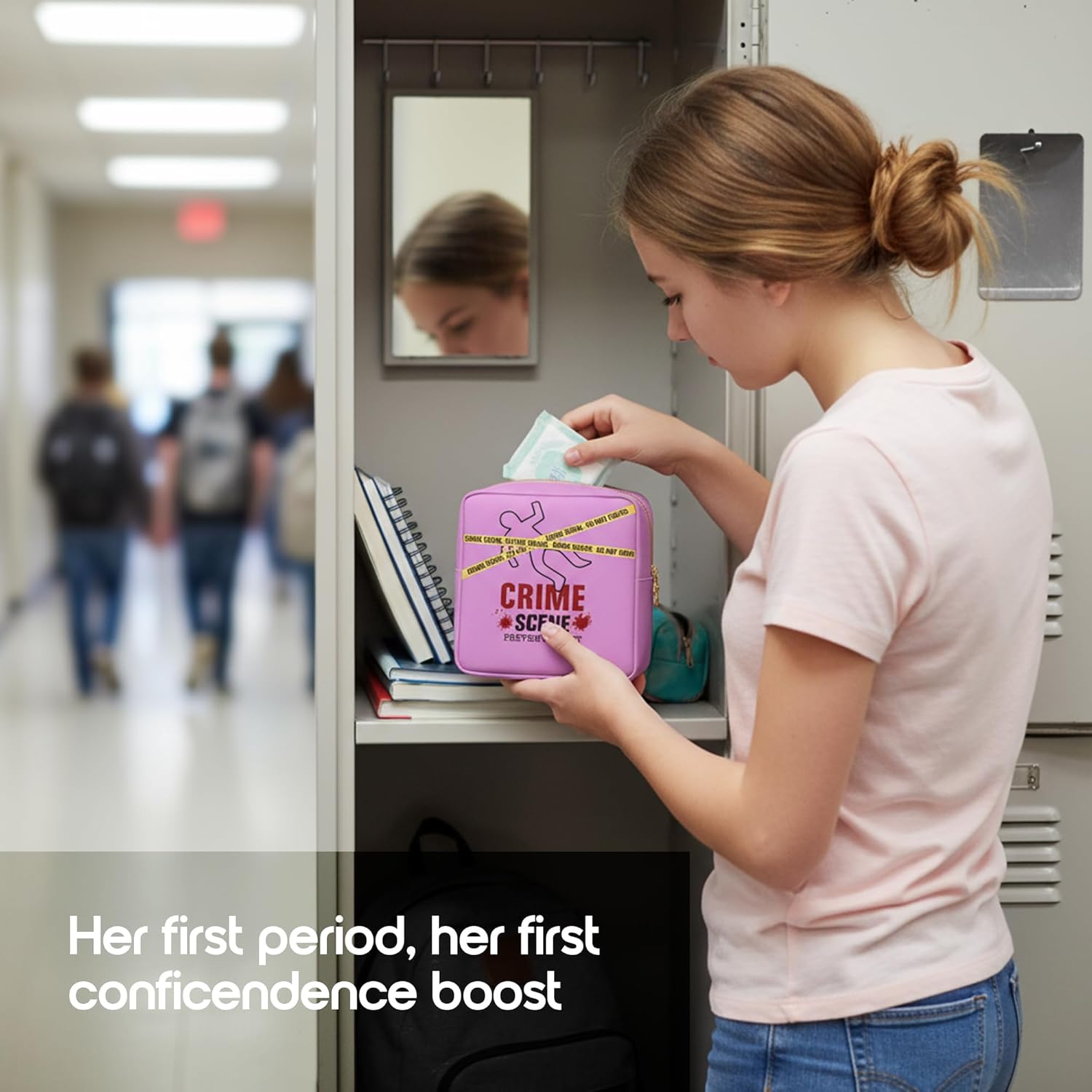 - DISCREET & COMPACT – Slim 5"x5" period bags for teen girls for school, keeps pads, tampons, and wipes hidden yet accessible. Fits easily in backpacks, purses, or lockers, giving teens and women privacy, confidence, and convenience at school, work, or on the go. Designed to sit flat on counters or locker shelves without slipping.