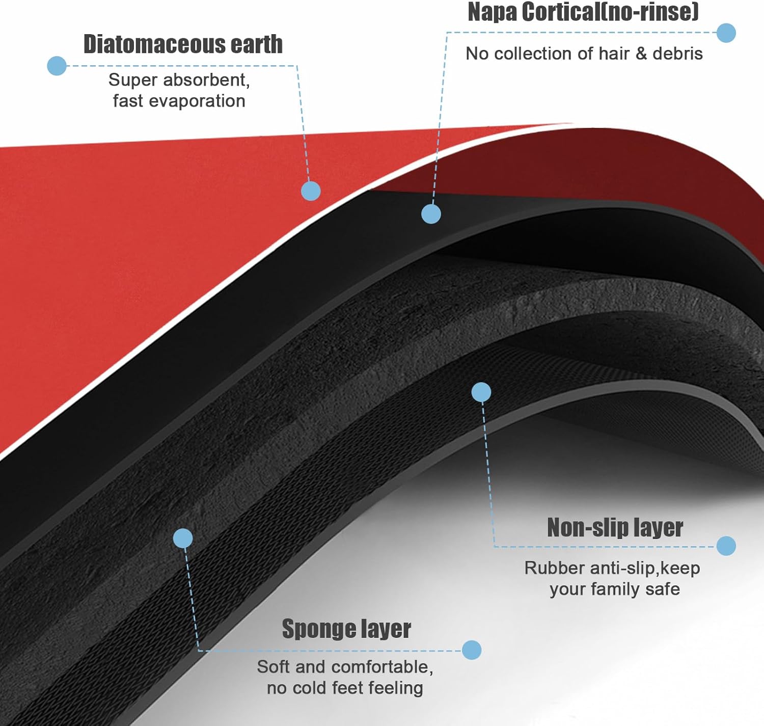 Diatomaceous Earth Bath mat Bathroom Rugs Super Absorbent Quick Dry Non Slip Bath Mat Thin Bathroom Floor Mats Fit Under Door-Shower Rug for in Front of Bathtub Shower, Red, 15.7"x35.4"