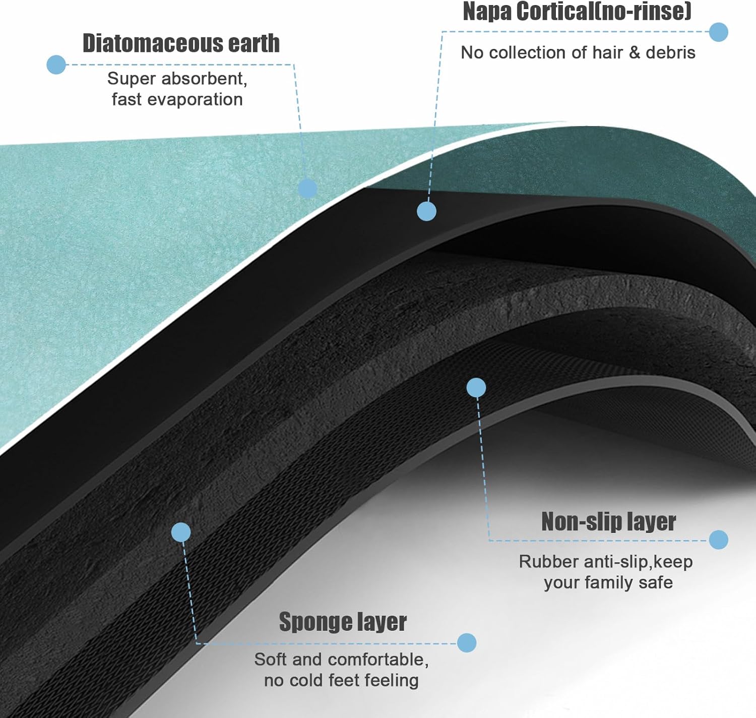 - 【Easy to Clean】Bath mats with new hair-free technology layer, water evaporates quickly, dirt attach to the surface,stain-resistant and easy to clean. Therefore, you don’t need to dry or clean the washable bath mat every day. If you want to clean it after long-time use, simply wipe the washable bathroom rugs with a wet cloth, or rinse it with shower nozzle. The bath rug for bathroom looks as good as new now