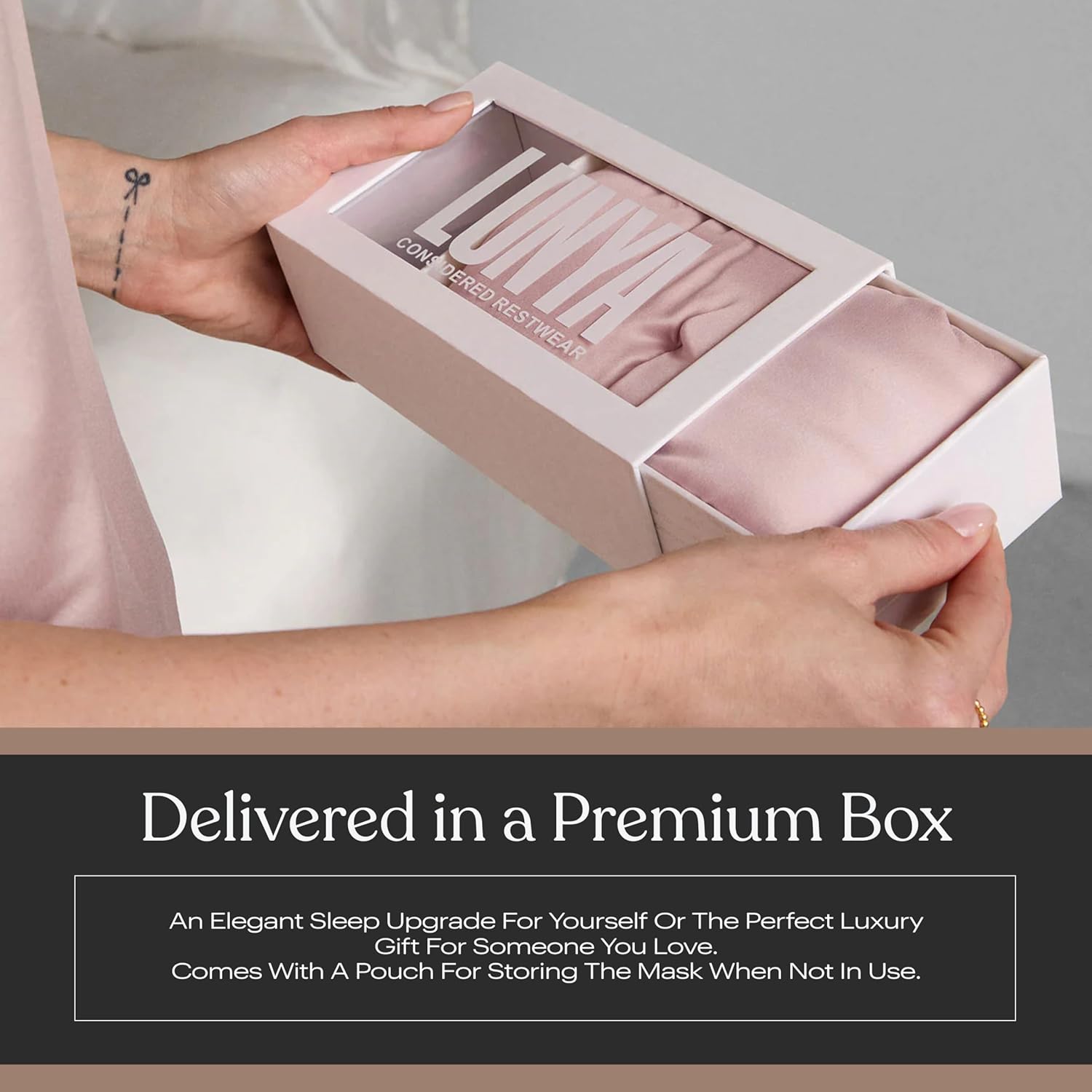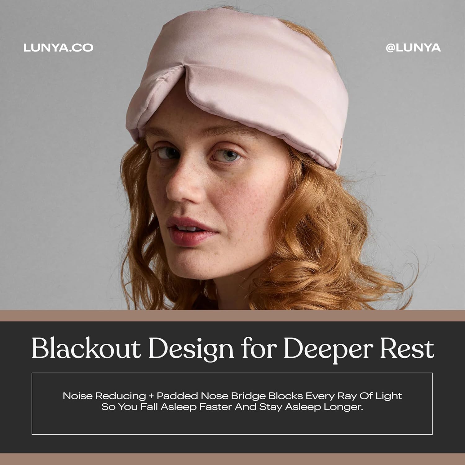 Lunya Washable Silk Sleeping Mask – Thermoregulating Mulberry Silk, Light Blocking and Comfortable Fit – Sleep Mask for Women and Men with Box – Delicate Pink – Large