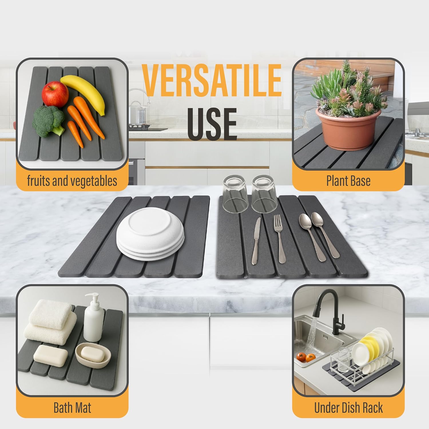 - One Set, Endless Possibilities : This 2-piece kitchen drying mat set (12'' x 16'') gives you the freedom to use it your way—drying dishes, under soap dispensers, or even as a base for indoor plants. Whether you live in a large house or a tiny apartment, this stone kitchen drying mat adapts to your space.