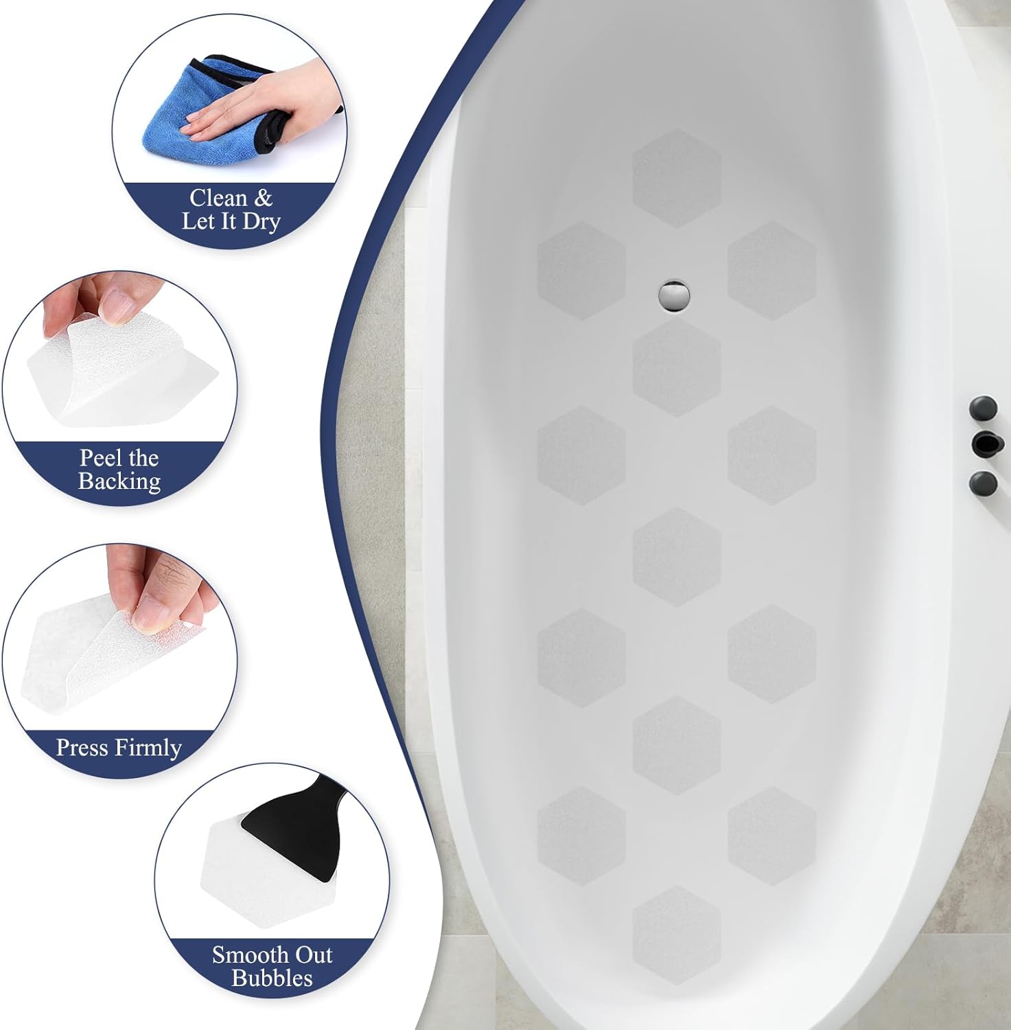- Easy to Apply & Remove: Clean and dry the surface, peel the non slip shower stickers, smooth them on, and use a squeegee to remove bubbles.Resist curling and remain residue-free over time. Peel off effortlessly, leaving no sticky residue behind
