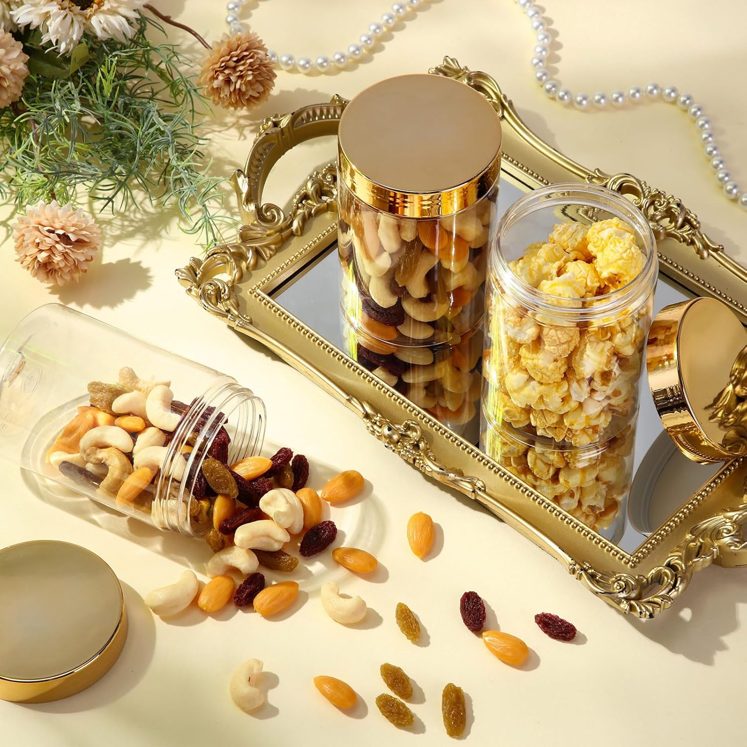 SATINIOR 12 Pack 8 oz Plastic Container Jars with Lids Round Clear Travel Cosmetic Container Slime Jars for Toiletries, Lotion, Cream, Ointments, Makeup, Rhinestone, Samples, Kitchen Storage(Gold)