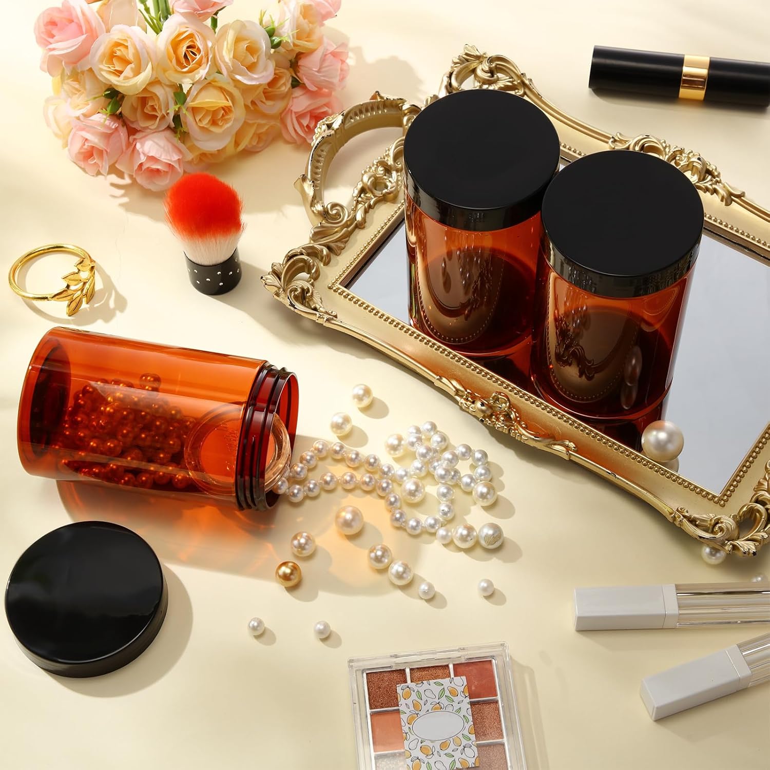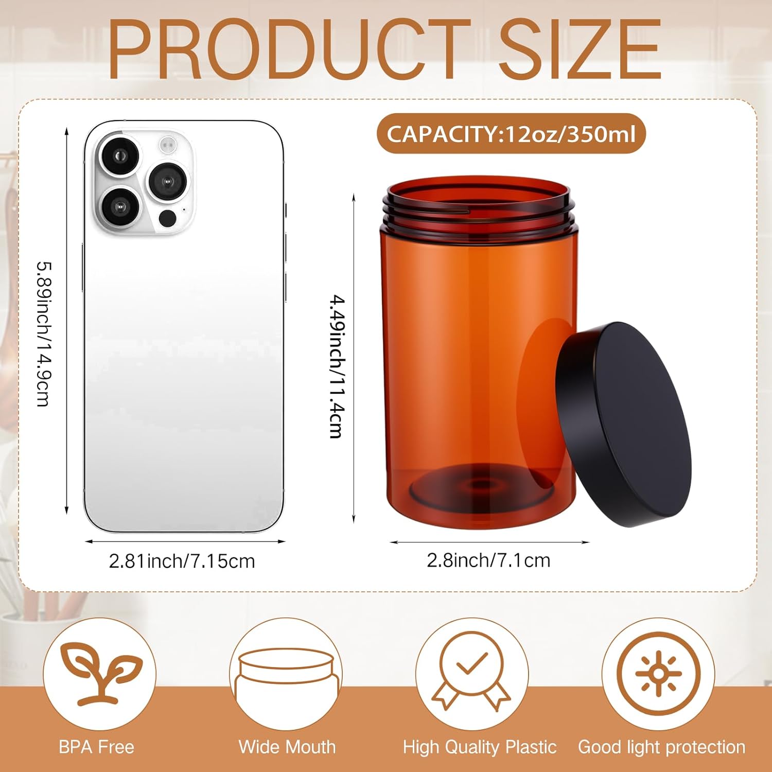 SATINIOR 12 Pack 12 oz Plastic Container Jars with Lids Round Clear Travel Cosmetic Container Slime Jars for Toiletries, Lotion, Cream, Ointments, Makeup, Rhinestone, Samples, Kitchen Storage(Amber)