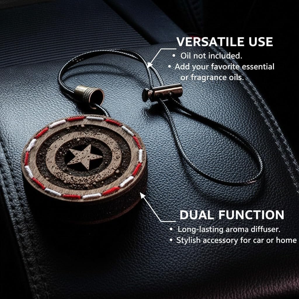 Wood Car Air Freshener — Handmade Car Air Freshener — Captain Shield Designed Fragrance Oil Diffuser in Wooden Gift Box — Aromatherapy Gift Set with diAquatoria Fragrance Oil - 10 ml