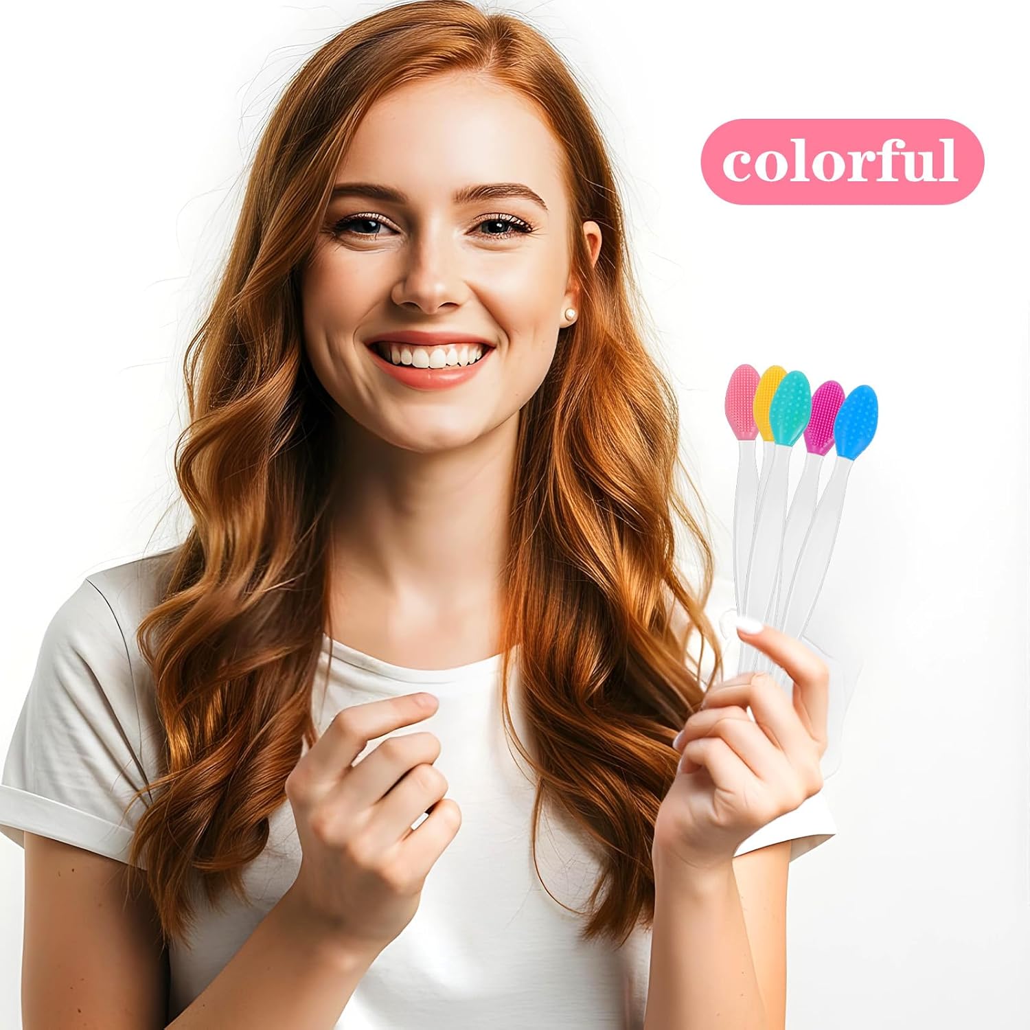 Soft Double-Side Lips Brush, 10Pcs Silicone Face Scrubber, Lip Scrub Brushes, Nose Clean Scrubber, Blackhead Removal Brushes, Gentle Exfoliating Tool for Lips Care Beauty (5 colors)
