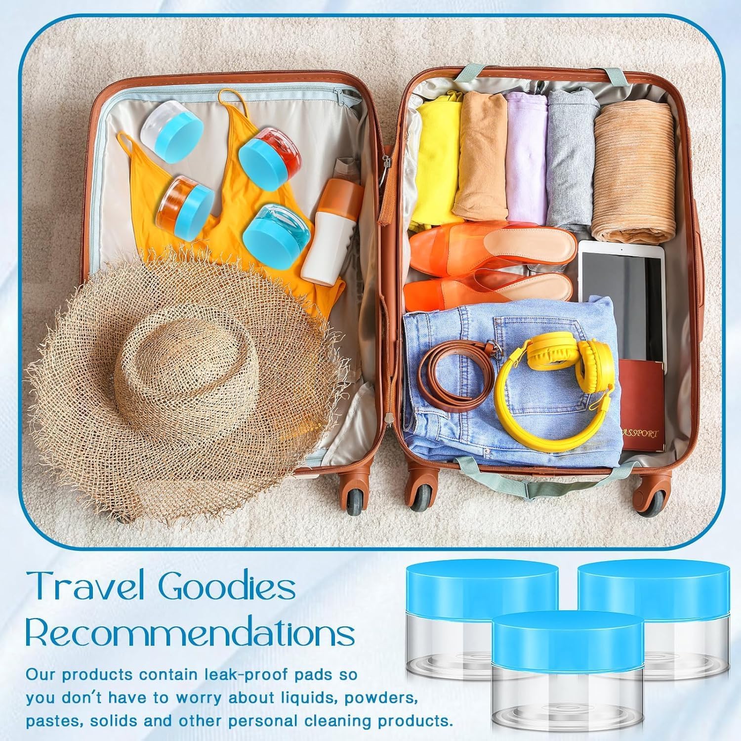 SATINIOR 12 Pack 1 oz Plastic Container Jars with Lids Round Clear Travel Cosmetic Container Slime Jars for Toiletries, Lotion, Cream, Ointments, Makeup, Rhinestone, Samples, Kitchen Storage(Blue)