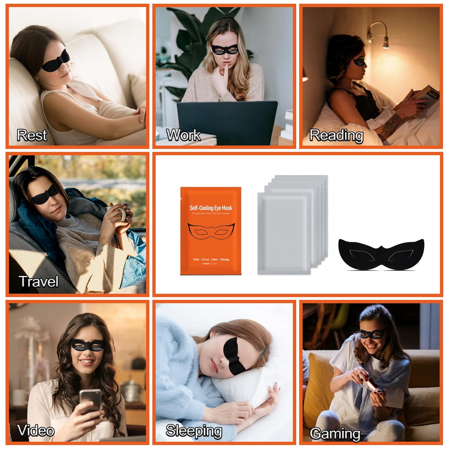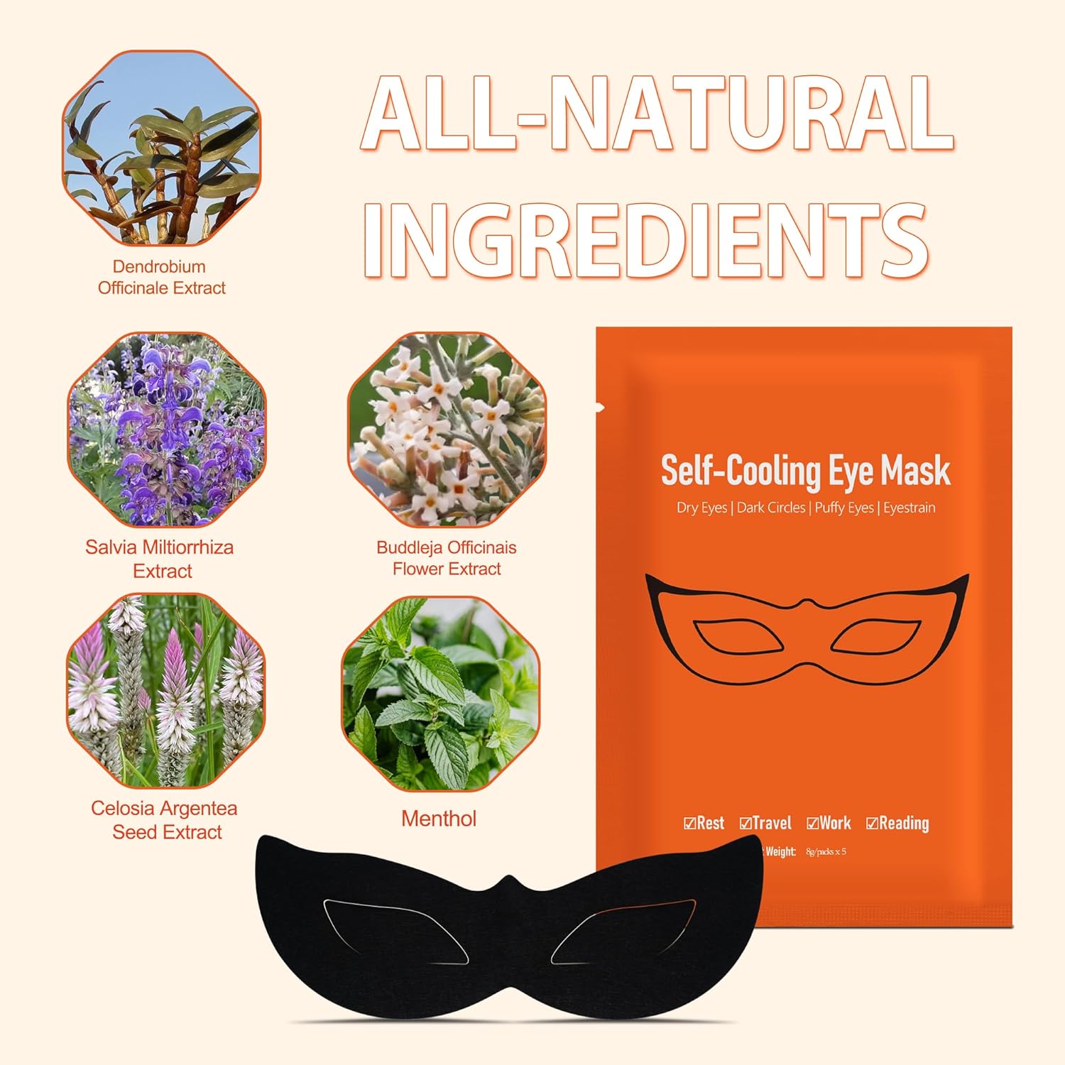 YDN Hydrogel Self Cooling Eye Mask, Individually Sealed, Cold Eye Mask for Puffiness/Dark Circles/Eye Bags/Dry Eyes/Migraines/Stress Relief, Travel Essentials - 5 Count