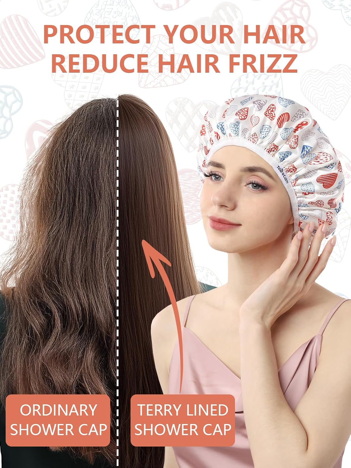 - Versatile & Practical Use: This waterproof shower cap is perfect for daily use, including showering, face care, hair care, hair masks, cooking, and travel. Protect your hair in style with the heart-shaped design that increase a fun, fashionable touch to your routine