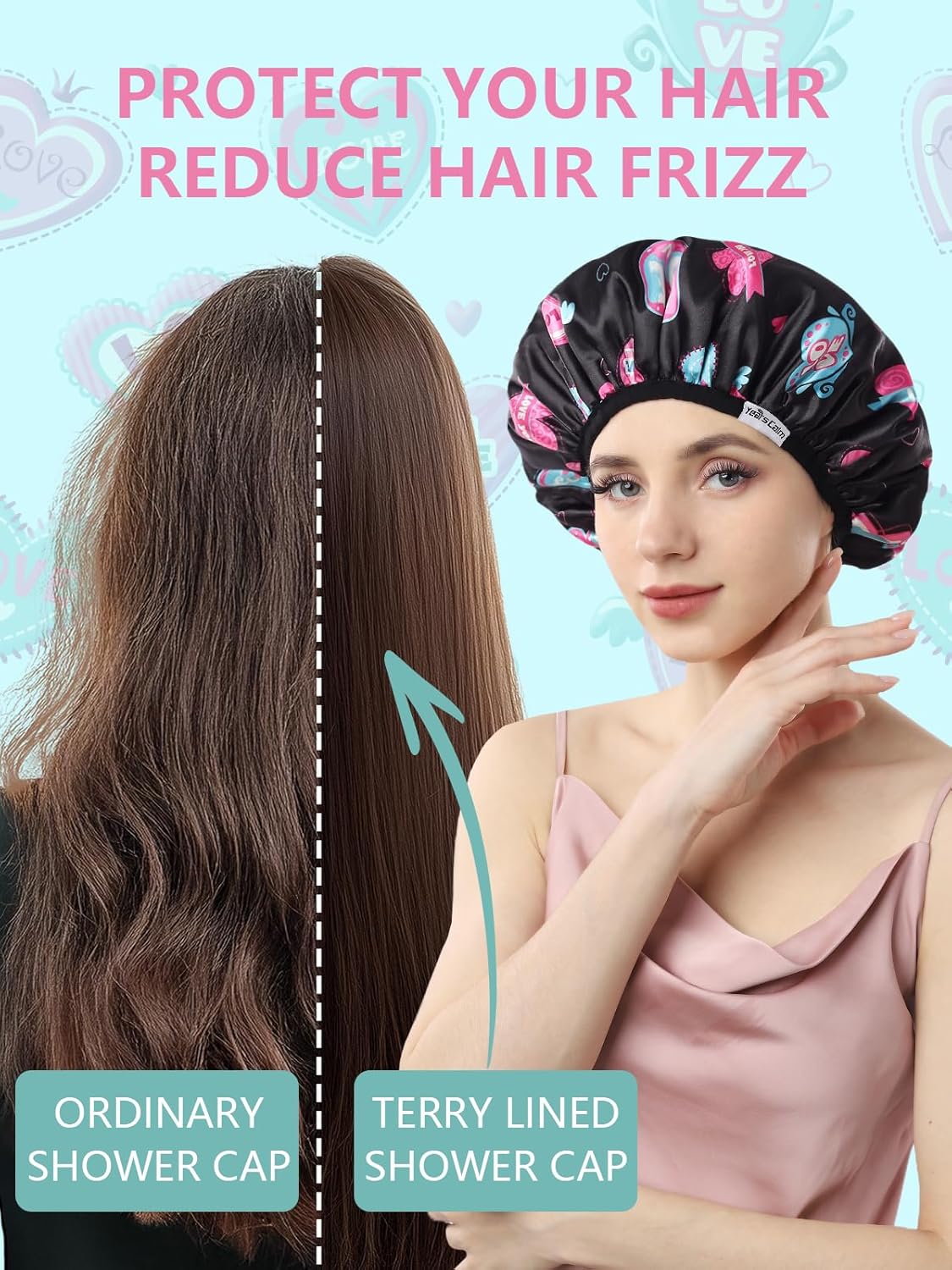 - Versatile & Practical Use: This waterproof shower cap is perfect for daily use, including showering, face care, hair care, hair masks, cooking, and travel. Protect your hair in style with the heart-shaped design that increase a fun, fashionable touch to your routine