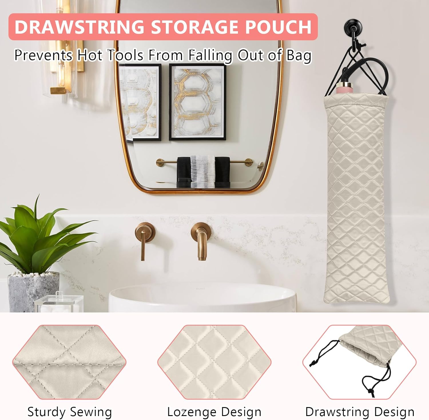 • Drawstring Closure Design: The intuitive drawstring closure design offers quick and effortless access to your hair tools while keeping them safely tucked away, ensuring your hair tools stay securely inside and preventing any accidental slips