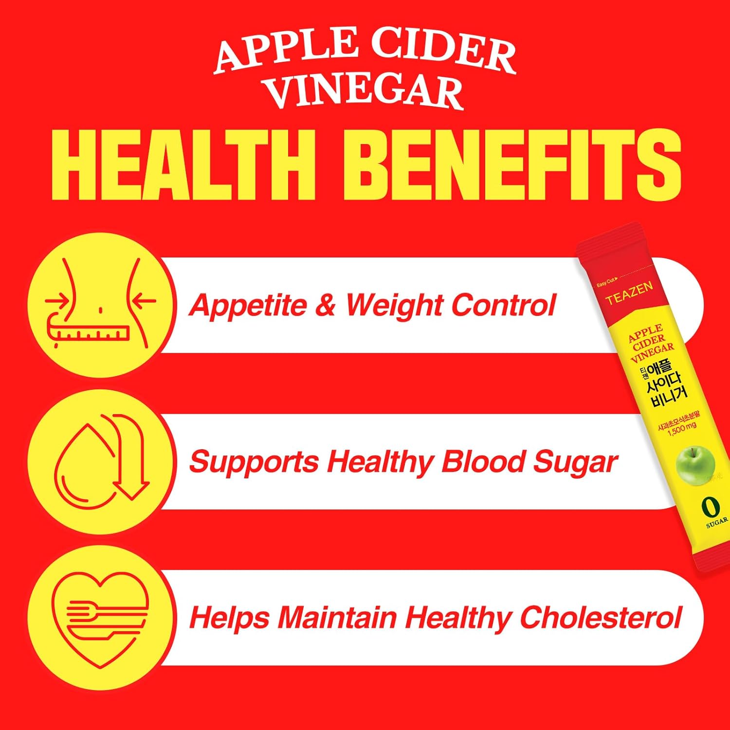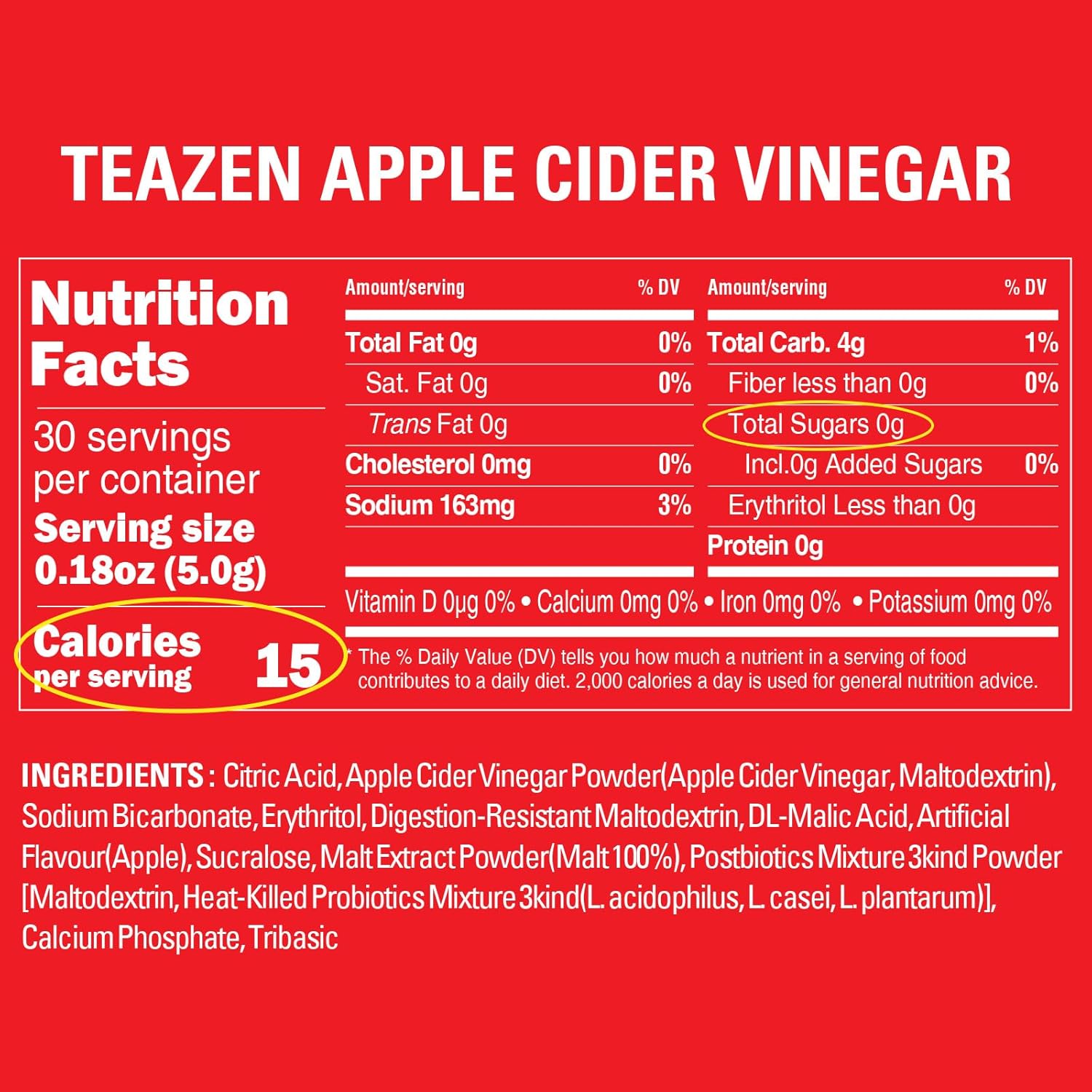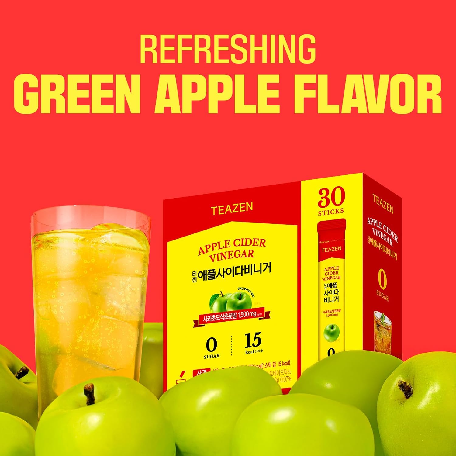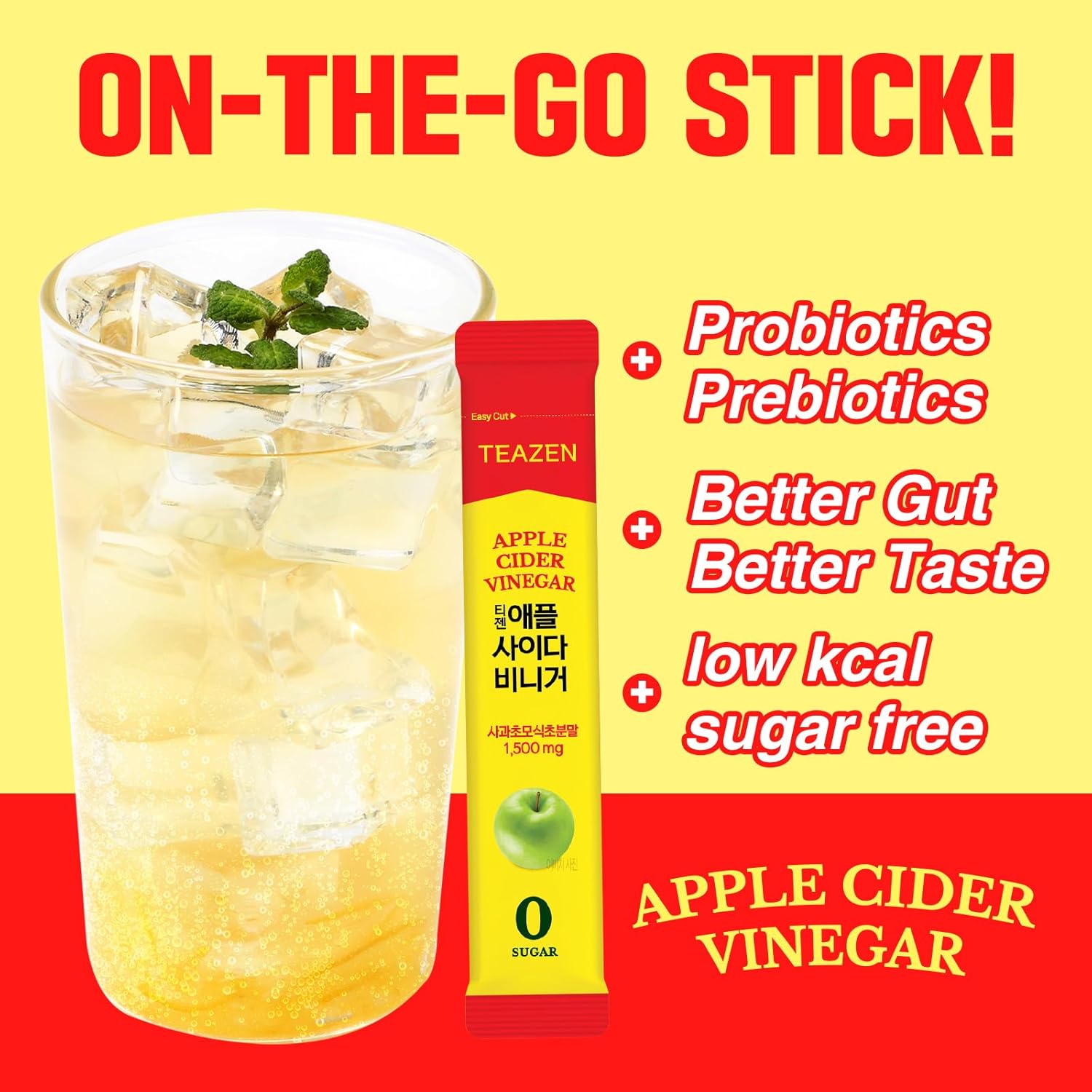 TEAZEN Apple Cider Vinegar Drink Powder Stick – On-the-Go Wellness with 1500mg ACV, Sugar-Free, Postbiotics, 30 Sticks | Supports Digestion & Metabolism