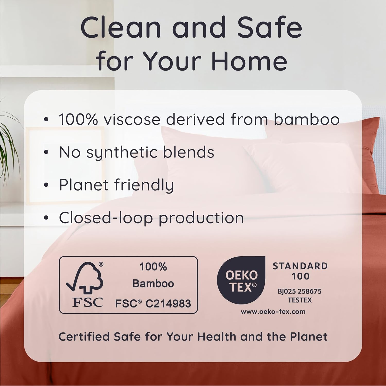 Bambaw 100% Viscose Derived from Bamboo Pillowcase Queen Size – Set of 2 Queen Cooling Pillow Cases for Hot Sleepers with Envelope Closure, Breathable & Super Soft Pillow Cases (Terracotta)
