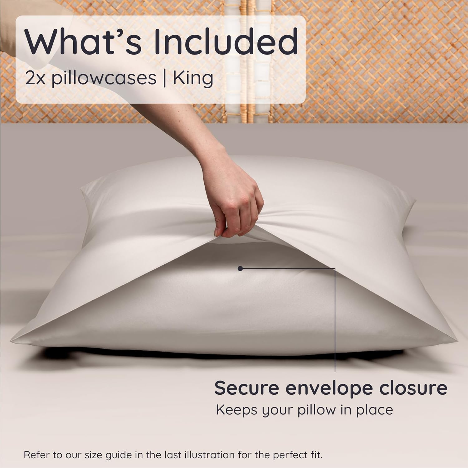 Bambaw 100% Viscose Derived from Bamboo Pillowcase King Size – Set of 2 Cooling Pillow Cases for Hair Protection with Envelope Closure, Breathable & Anti Acne Pillowcase (Sand)