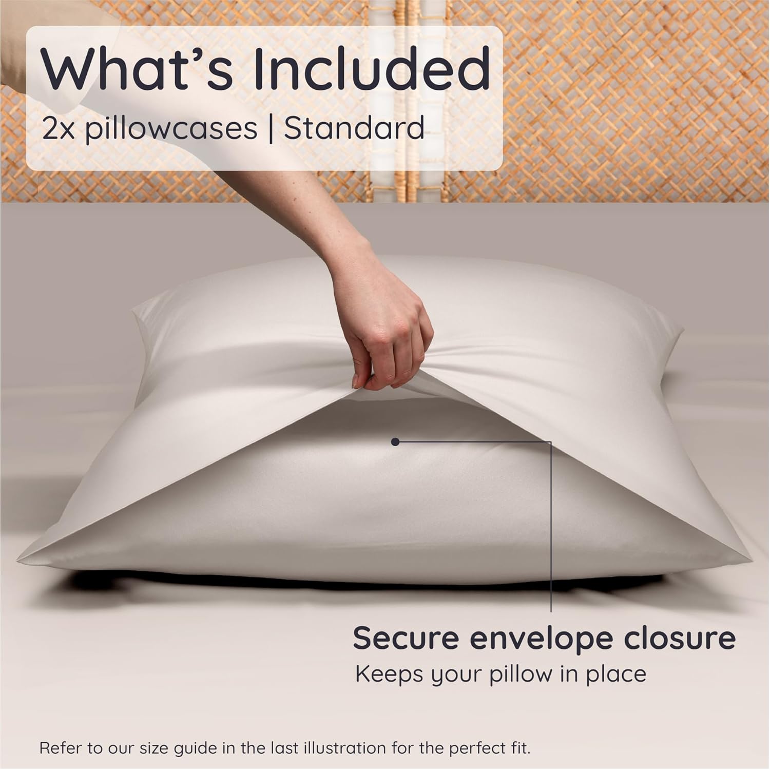 Bambaw 100% Viscose Derived from Bamboo Pillowcase Standard Size – Set of 2 Cooling Pillow Cases with Envelope Closure, Breathable & Soft Pillow Cases Standard Size (Sand)