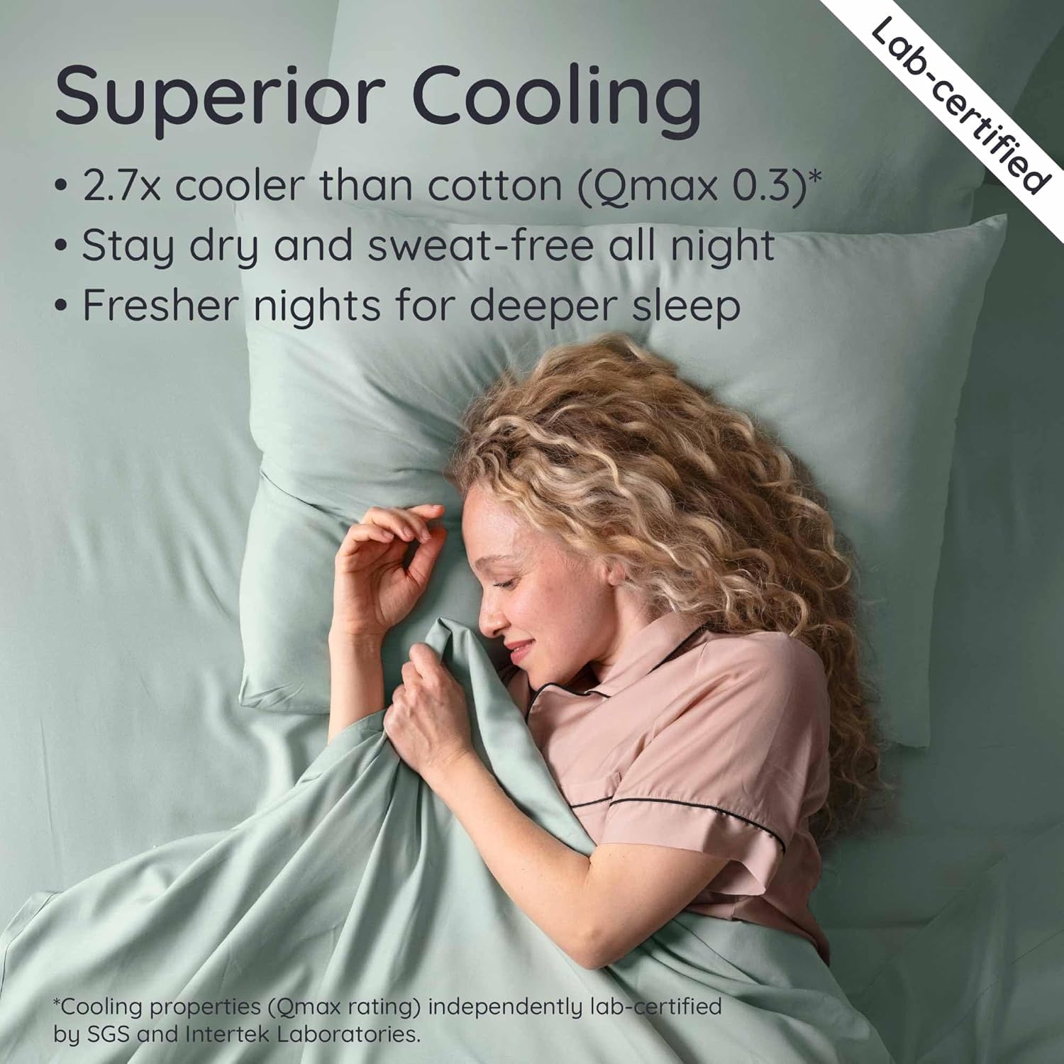 Bambaw 100% Viscose Derived from Bamboo Pillowcases King Size – Set of 2 King Size Cooling Pillow Cases for Ance with Envelope Closure, Breathable, Soft & Luxury Pillow Cases (Sea Glass)