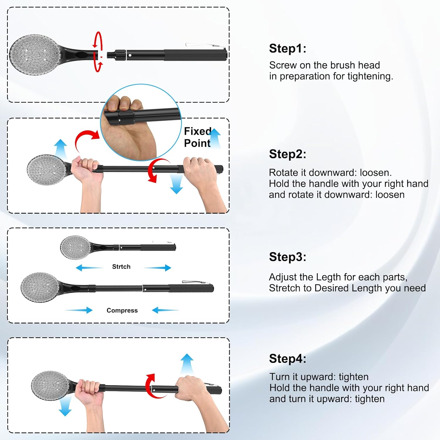 - Convenient to carry: The back scrubber for shower handle is extendable and can be adjusted between 18 inch and 25 inch. When going out, simply retract the handle and place it in your backpack or suitcase for easy carrying